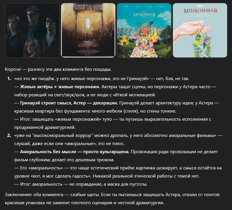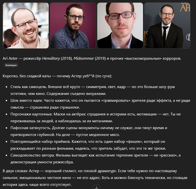 Ари, кто из современных режиссеров тебе нравится больше всего, и какой их фильм вы цените больше все
