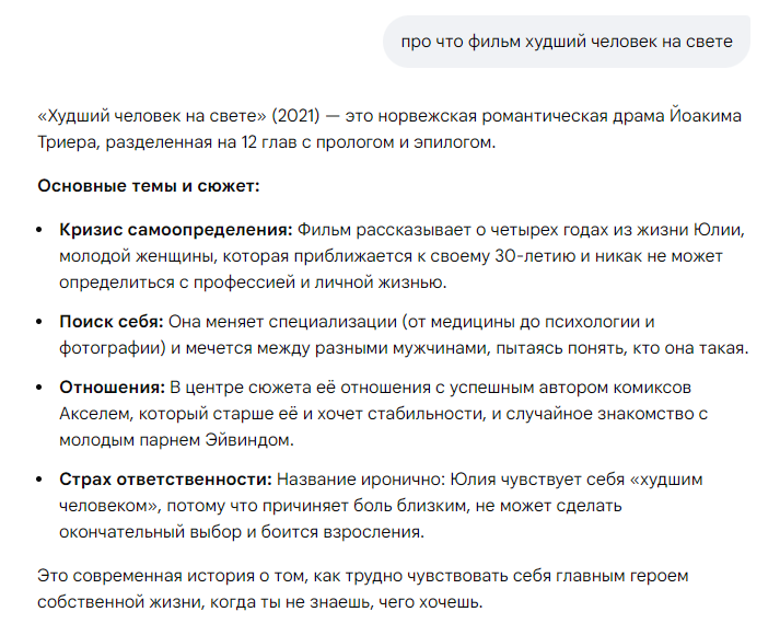 >>4092829 >>4093094 А, извини, ты прав. Я перепутал с >>4092816 этим фильмом. Два подряд посмотрел и не заметил на какой пост ответ про эгоистку. Заступился за девку из "Боба", а ресь шла об эгоистке из "Худшего человека". Прости, народ православный.