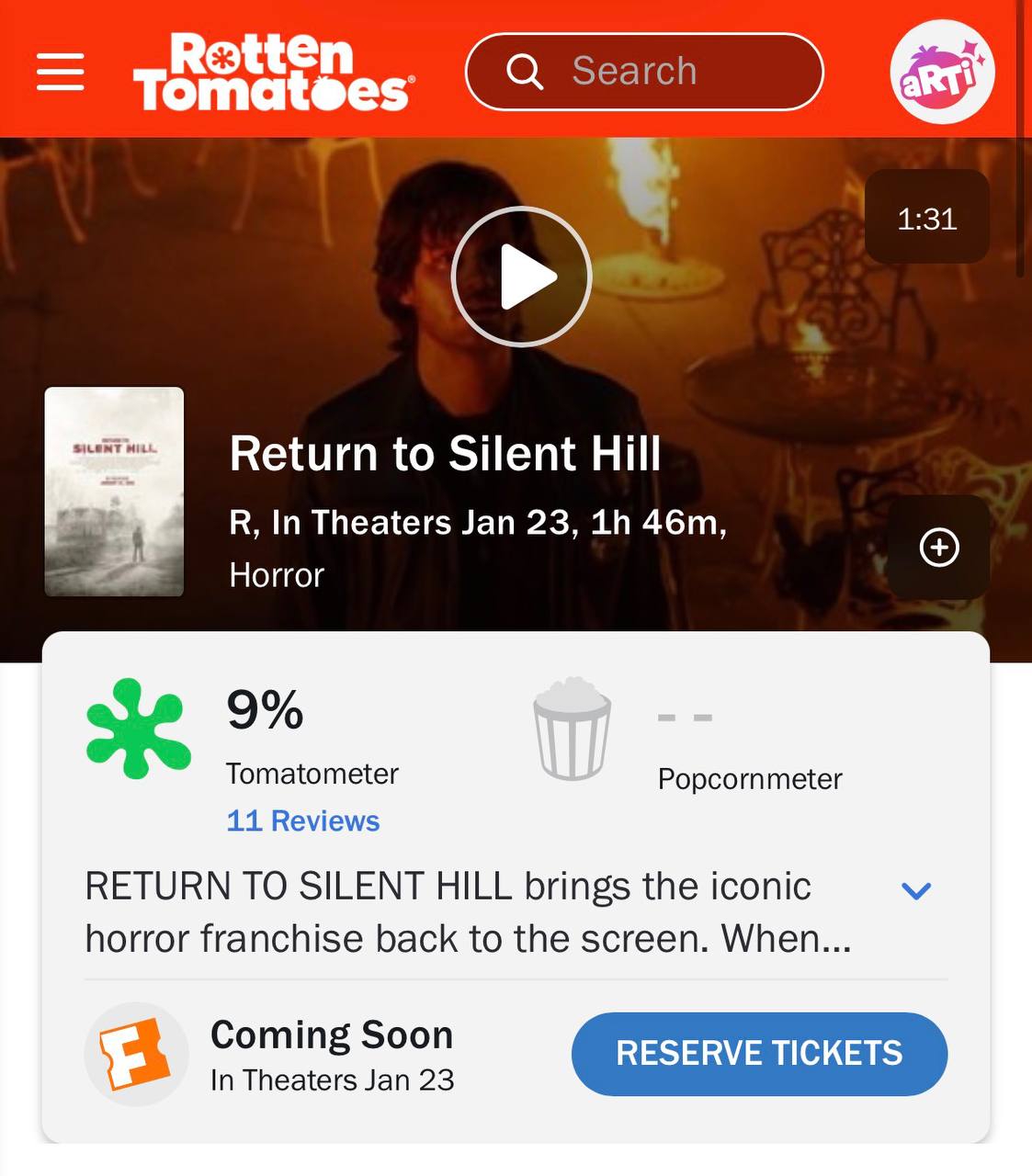«Возвращение в Сайлент Хилл» провалился у критиков, получив на Rotten Tomatoes всего 9% свежести.