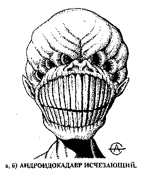 Рост – до 2 метров. Вес – не установлен. Появляется всегда неожиданно. Пугает жертву–контактера оскалом гигантских пластино–зубов, шипит, пытается что–то довести до сознания контактера – ни в одном случае контактов из имевших место сорока двух – смысл не определен. Обладает мнимыми исчезающе–проявляющимися глазами. Гипнопотенциал – до 5 рун. Растворяется в воздухе бесследно. Ни одного летального исхода после контактов. Воспринимается как призрак–наваждение. Не реагирует на удары, уколы, пули, снаряды. Локализация– неопределенная. Всегда рядом находится летательный объект малой формы. Появление сопровождается слабым пурпурным свечением. Одет в серебристо–серый комбинезон без швов. Группа опасности – не установлена.