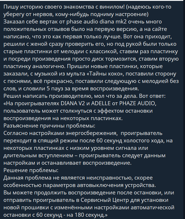 бля хуета же ну. цветной винил какой то вертаки в хайтек стиле гладенькие лол светодиодная подсветочка ахах. вот в школке когда учишься приходишь домой с уроков и достаешь с антресолей старые пласты кругозор там песни высоцкий и всякое такое. и слушоеш на советском проигрывателе отделаном шпоном через колоночки китайского муз центра и за окном вечер снежок идет. хорошо...