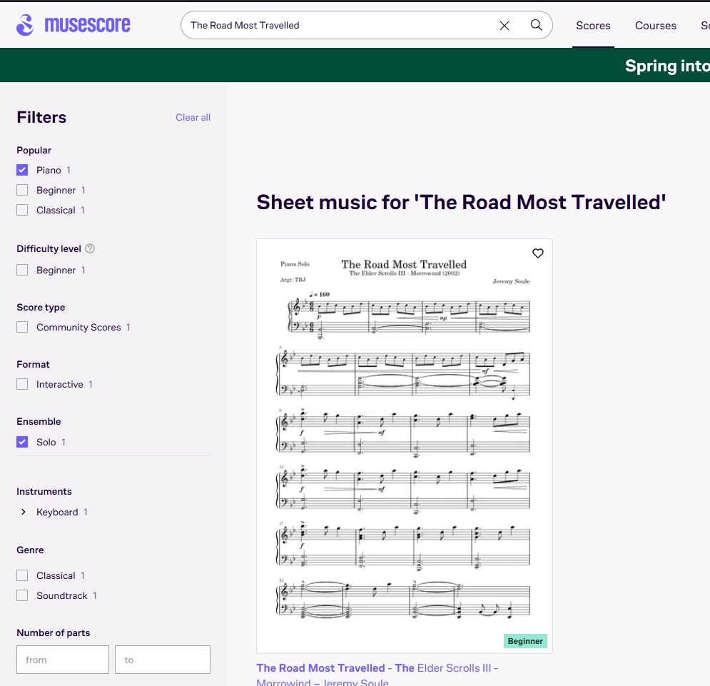 1. В браузер (у меня например файрфокс отдельный для этой цели, чтобы вкладки не терять) устанавливаете расширение с названием типа "Music Score Downloader", их много они разные. 2. Идёте на musescore сайт. 3. Вводите свой запрос, например "The Road Most Travelled 4. В фильтрах ставите "Piano", "Solo". 5. Жмаете поиск, открываете любой файл. 6. В расширении жмёте три кнопки (скачать ноты, скачать mp3 аудио, скачать миди). 7. Всё. Теперь у вас есть и ноты и аудио по которому можно ориентироваться и миди которое можно загнать в синтезию если вы из этих.