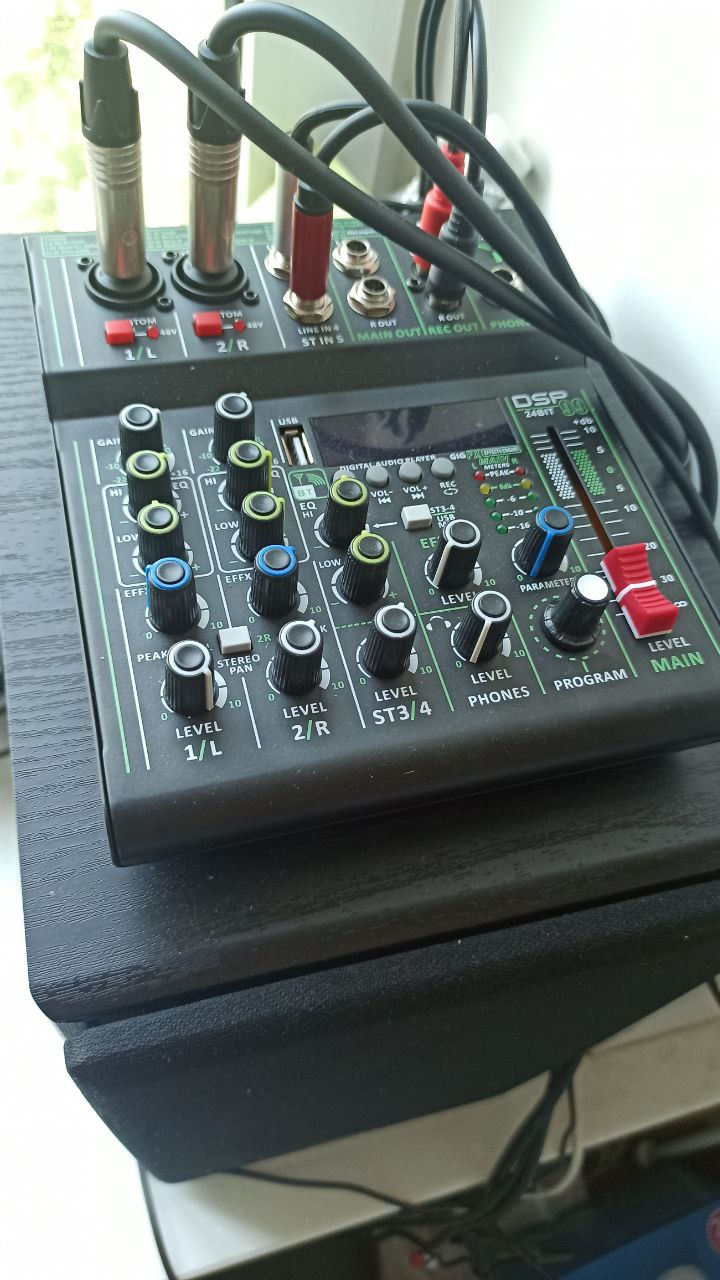 Осталось только в DAW отключить мониторинг на канале, куда пишешь, чтоб у тебя не было слышно задержки (ты же через микшер себя уже мониторишь). У меня давно лежат вот такие битсы(пик2), где отсоединяемый провод и его можно подключить или слева, или справа. Так вот, я их как-то именно так и использовал, чтоб мониторить звук с двух устройств - в левую чашку втыкается телефон с минусом, в правую выход с гитарного педалборда, где в конце цепи стоит Mooer radar, в который AUX-входа не завезли. Так и сидел с таким сетапом для тихой практики, пока не поменял радар на другой кабсим, но это другая история.