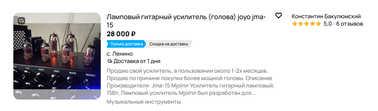 >>1124154 Да, у меня был опыт. Пригласили меня в частный дом, там ребята репали какие-то гавно-рокерские песни. Ну потом все разошлись, я как раз ягуар купил японский, хотел в 4х12 потестить, взял с собой, по случайю. Ну и тут хозяин кваритры говорит - парни! Я купил инспектор! Давайте собирать, ну и прям на моих глазах это китайское уёбище собралось, как конструктор лего, был это телексатер, звучал он как говно. Потом хозяин говорит, а ну дай свою, я ему проятгиваю ягуар, он сдаиться и залипает, просто тыкает ручки, крутилки крутит, звук слушает, потом говорит - хуй знает, у меня когда-то урал был, очень похожа. Вывод какой нахуй из этого всего, покупатели инспекторов это люди которые нихуя не слышат, просто 0. А те что в интернетах газуют на них, это проплатка, я уверен без камер, они их даже в руки не берут.