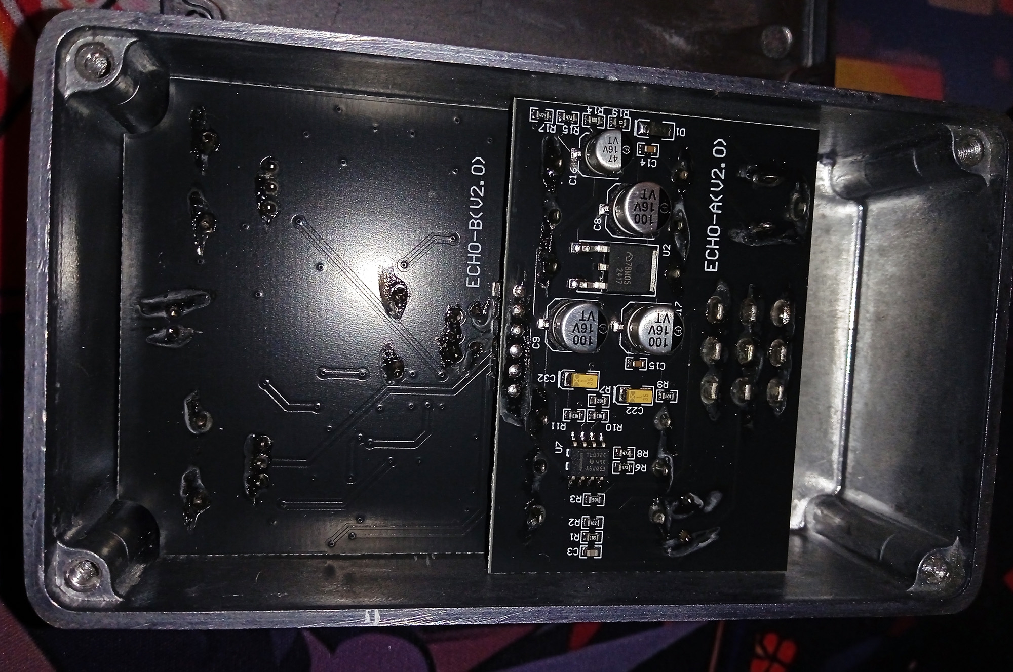 >>1124245 Ну, есть 3 версии этой Ghost echo. V1, V2, V3. Как я понял, в интернете лежит схема V1, и по ней можно самому собрать клон. Но вот я ещё нашёл картинку V2. Там всё так же одна pt2399.