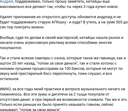 >>1124220 Тут еще многое от степени нищеёбства и связанных с этим комплексов зависит. Условный джон работая в макдональдсе может раз в неделю купить себе педаль за 100-200 баксов, хоть пигтроникс, хоть бутиковую от ванхалена, побренчать на ней часок и скинуть её на местном авито или унести в подвал своего швитого домика и это будет обычным, повседневным, ничего не значащим ни для кого занятием. У пидарах такой возможности нет в принципе, поэтому обязательно вылезет один из комплексов, не нищеёб будет хуесосить нищеёбов (но они в принципе, всегда хуесосят их), нищеёбы будут хуесосить друг друга, у кого клон, а у кого оригинал. Кстати, самая мерзкая прослойка, это как раз нищеёбы которые берут прогретые оригиналы, стоящие, допустим в три раза дороже клона, но пропустившие из-за этого ипотечный платеж, лал, такие больше всего будут срать о том что в оригинальном OСD охуенный яркий звенящий перегруз прорезающий трек, а в Moskyaudio dolphin - бездушный глухой каловый треск, при том, что у моски этот овердрайв допилили до ума, добавили туда дополнительные настройки и каскады, т.е. даже не то что скопировали (хотя у них есть копия и 1 в 1), а сделали заебись как и надо было.