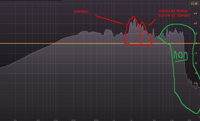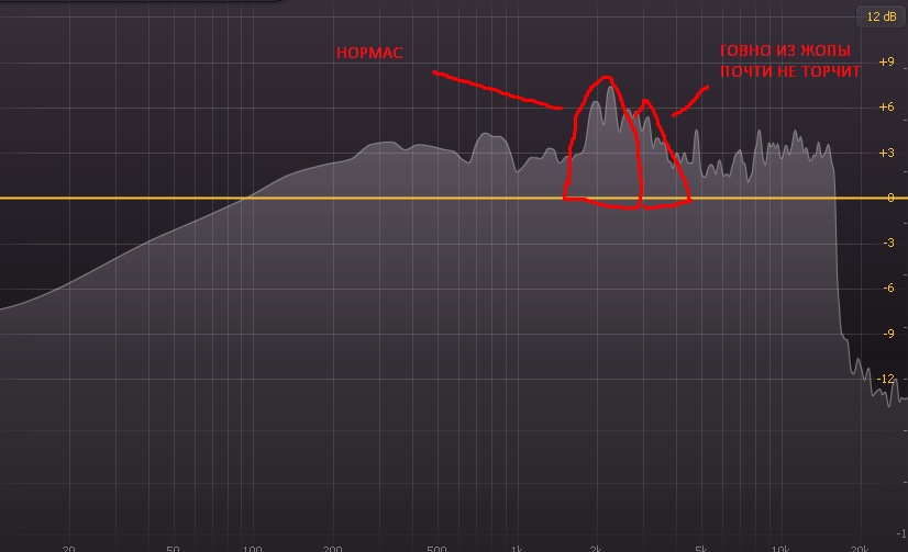 >>1125104 https://vocaroo.com/1mdwLaeq8NkT На. Я не понял, какой ты там второй аккорд играешь, я не смог подобрать, ибо я глухомань. И во второй части мне тоже было впадлу подбирать, поэтому на похуй просто что-то отрывистое сыграл. Это всё к чему было. На первом скрине эквализация из твоего трека. Посмотри, как торчит у гитары область выше 2,3кГц. Эта область заставляет гитару звучать на переднем плане, с ней тяжело работать, она добавляет неестественности, перекрывает вокал (если он будет), портит пространство ,и в неё попадает шум, когда, например, водишь руками по струнам. Поэтому у тебя так сильно акцентированно слышно, как ты меняешь положение руки на струнах. Это случается потому, что цифрокал очень сильно зажимает динамику и выпячивает все огрехи. На втором скрине эквализация у меня на лампе. Эта область по дефолту не лезет, поэтому всё это звучит естественнее. Ну и динамика не зажата, поэтому могу как угодно сильно бить по струнам. Различия не большие, но они очееень сильно решают, когда ты прям трек делаешь, а не просто что-то на похуй играешь. При чём тупа эквализацией это не лечится. Если ты попытаешься на цифрокале просто крутануть требл и пресенс в ноль, то ты получишь глухую гитару. Или, если ты прям попал в свитспот, а потом перешёл на другую партию в песне, то теперь снова придётся переэквализировать уже вторую партию, ибо она будет снова торчать. С лампой таких проблем нет.