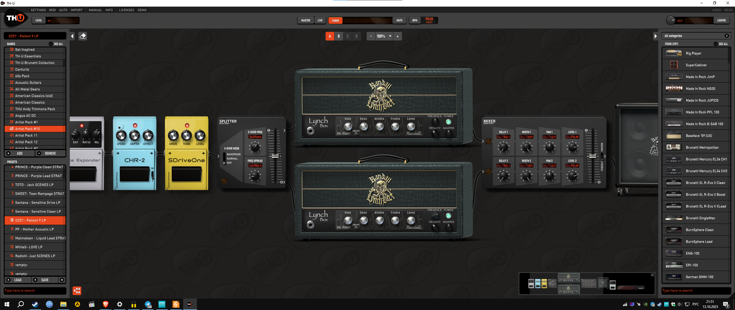 возник такой вопрос по гитарному звуку: в демке разный немного звук у гитар, clean - точно отдельный усилитель, а вот перегруженные гитары - какой усилитель использовать для такого звучания? и нужно ли разные усилители использовать?