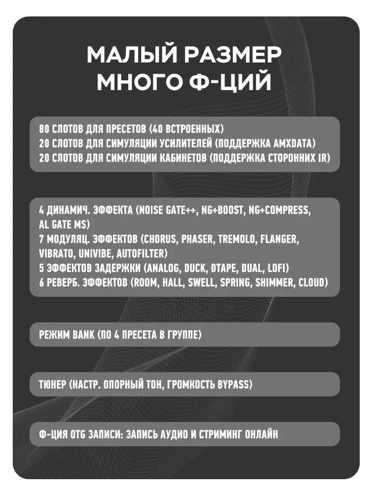 >>1126976 Джоёкал 1)Нет линейного выход, только под наушники 2)Не играет на чистом с динамикой 3)Гибридный кал 4)Не помещается в очко 5)Нет эффектов 6)Нет встроенных профилей NAM 7)Нет встроенных профилей Tonex
