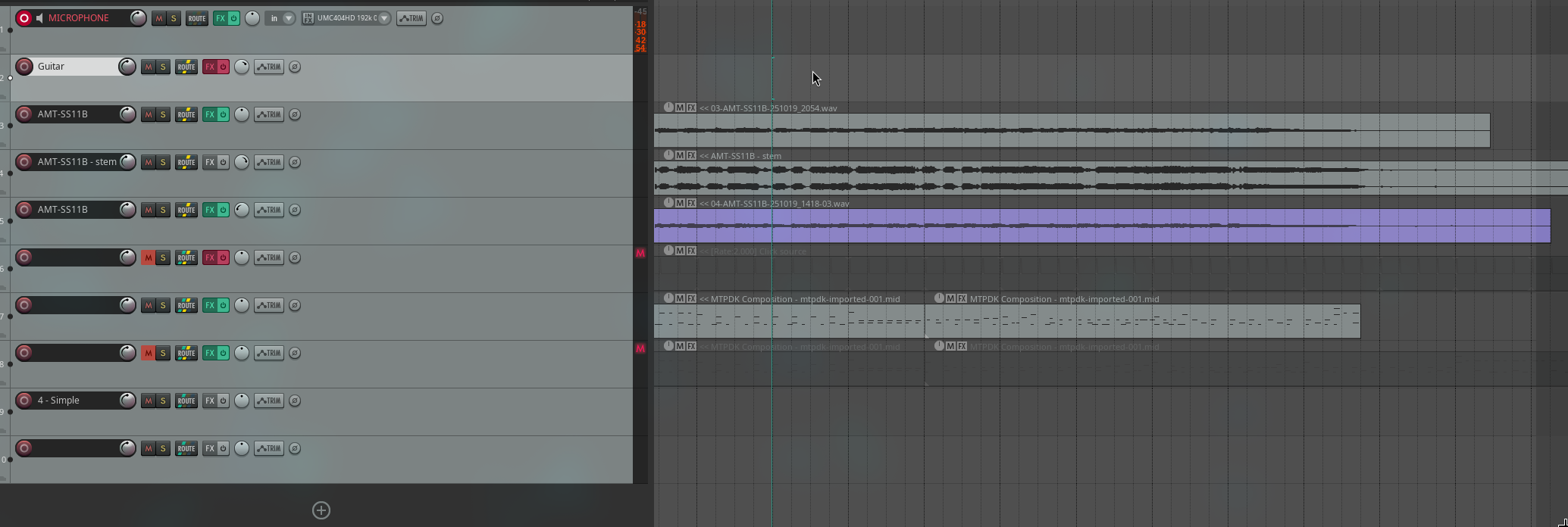 >>1127705 >и мониторинг отключил, тупо на звук метронома Так это норма. У меня часто трек просто зависает и останавливается т.к. мощности компа не хватает. Так я просто мьючу лишние дорожки ну и в случае баса например отключаю прямой мониторинг (на задержку 6мс вообще похуй)