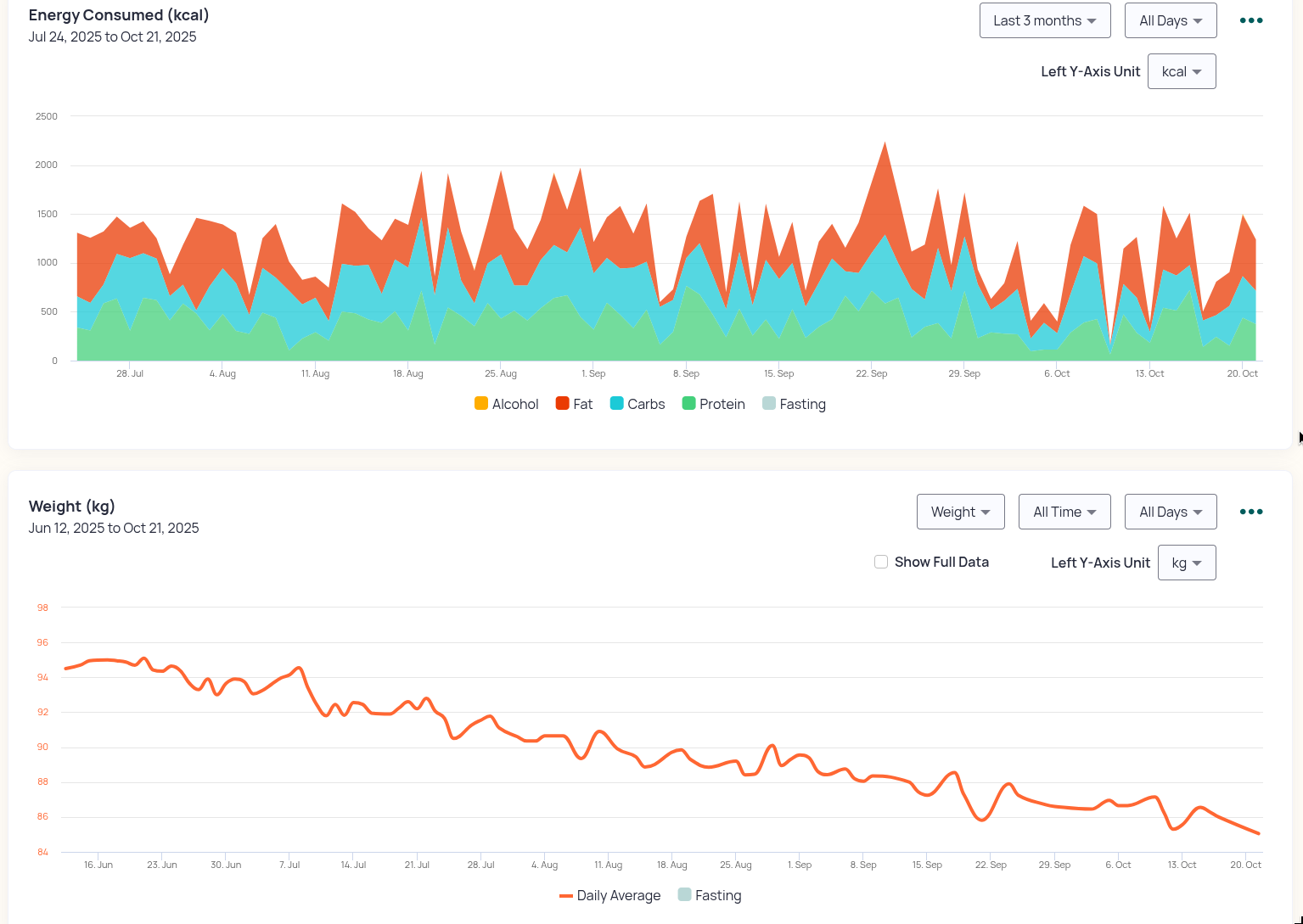 вот тебе самый простой пример работающего процесса и метрик на похудении минус 10 кило за 5 месяцев без тренировок