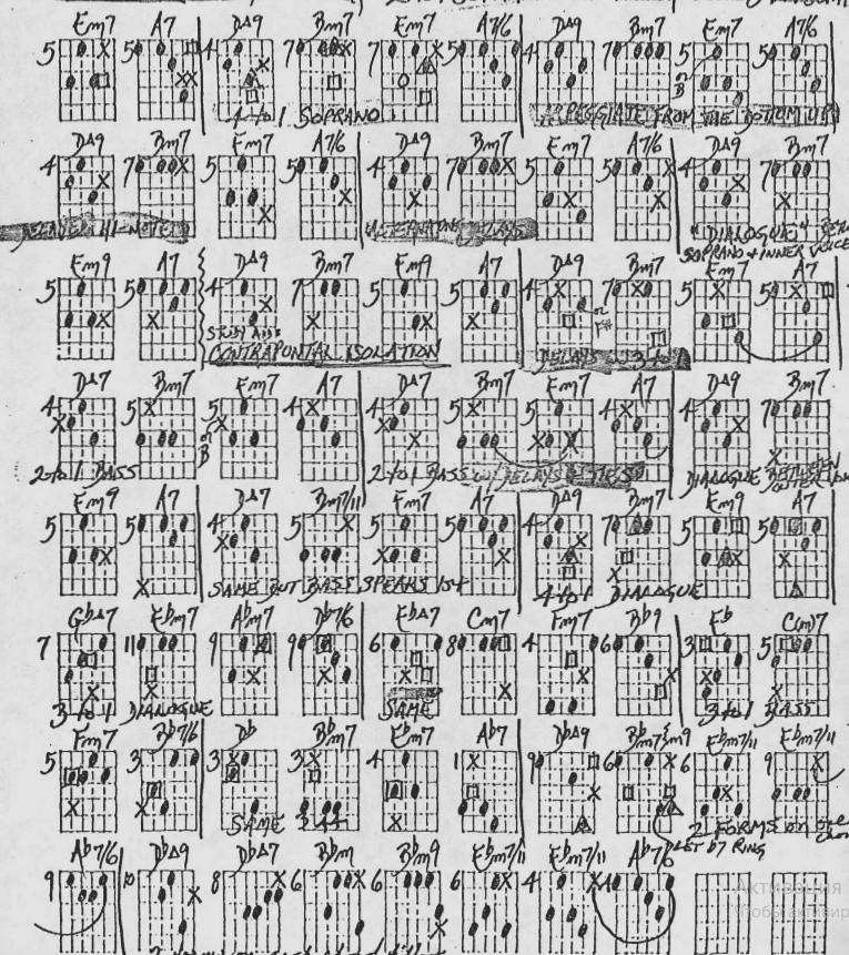 >>1127973 >>1127983 Ну и кстати, вот держи, как практическое упражнение к вышесказанному, как раз в той же тональности о которой я писал. Со скоростным перебором можешь сначала не париться, играть чисто дрыньканьем, но типа модные аккорды отсюда возьмешь себе в копилку.