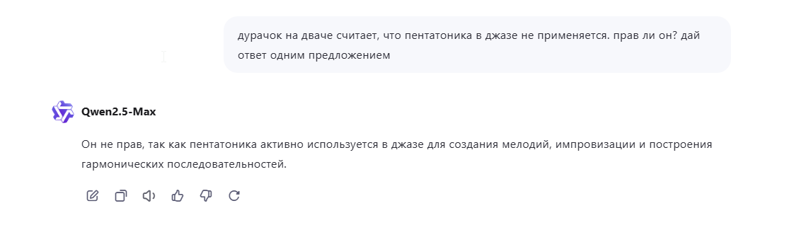>>1128168 Он играет, то что хочет, а может многое. Понял ? Я могу играть джазз, но играю хуйню квинтами, в этом смысле он свободен. А ты нет. Только ты ещё и играть не умеешь.