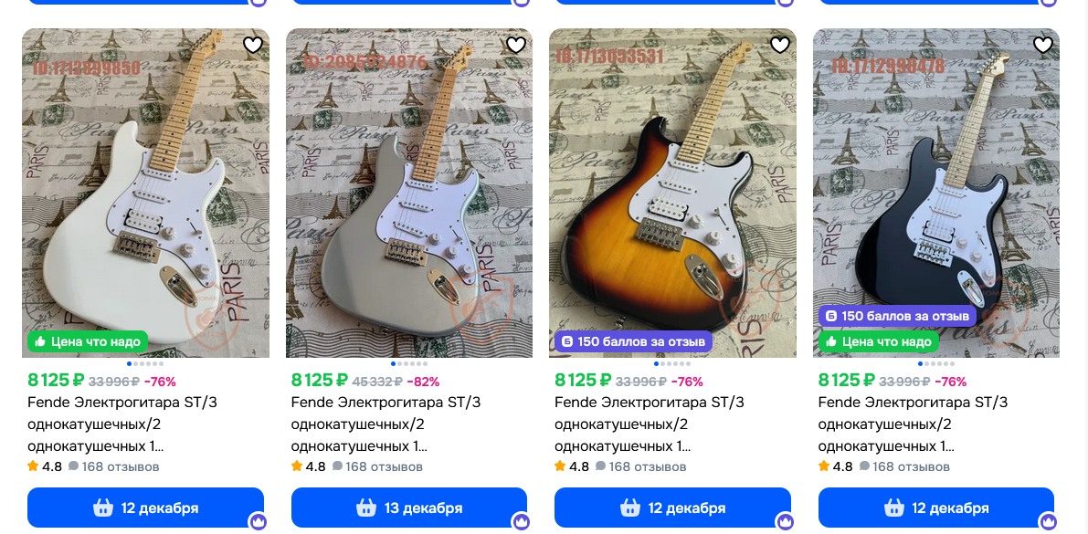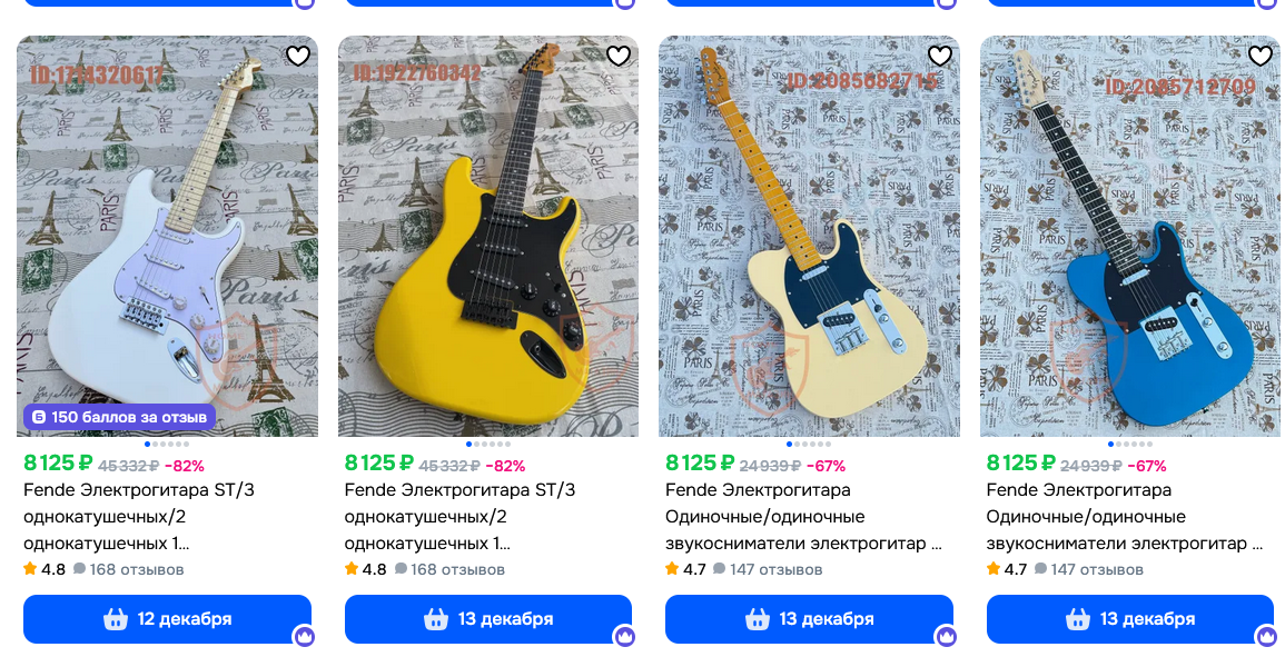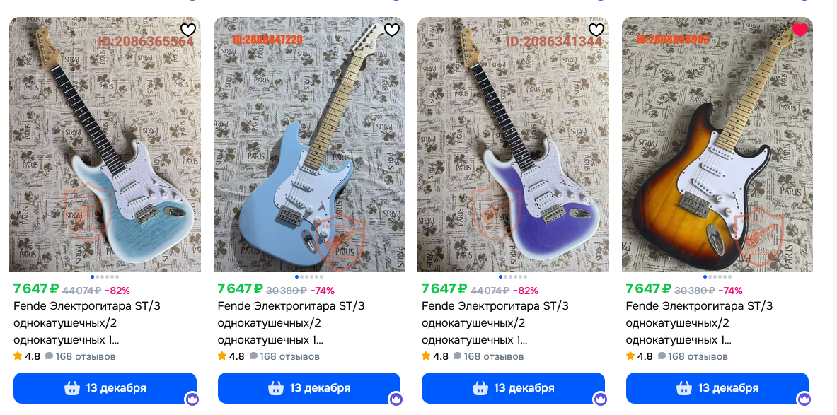 Кто-нибудь имел дело с репликами Fender (Они же Chender, они же Fende, китайская паль)? Думаю себе собрать парткастер ебовый. Всё это стоит реально копейки, так что не жалко будет в мусорку выкинуть в случае полного провала (ну как провал, скорее всего гриф в мусорку, а корпус будет с норм ЛКП)