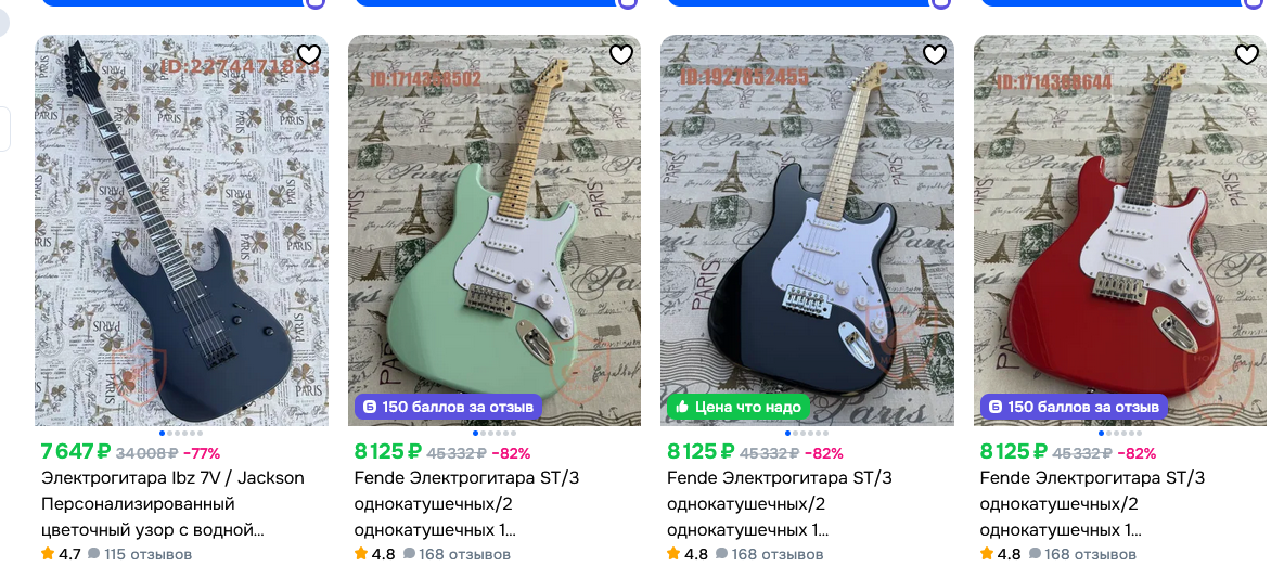 Есть просто китайские палкеры(та же реплика, только логотип свой), а у них лады тонюсенькие-малюсенькие. Пару бендов сыграл и уже слизал верхушку. А пальцы сразу убипаются в накладку...