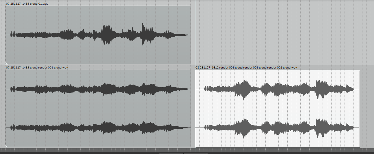 >>1130872 >по звуку гитары кажется что он реально играет Ты когда-нибудь в реальный микрофон записывался? Слышал, как звучит запись, если отдалиться от микрофона сантиметров на 20-30? Там очень сильно реверберация помещения начинает проникать. А на вокале помещения нет. Так звучит стерильная запись со студии в специальной комнате с поглощением.