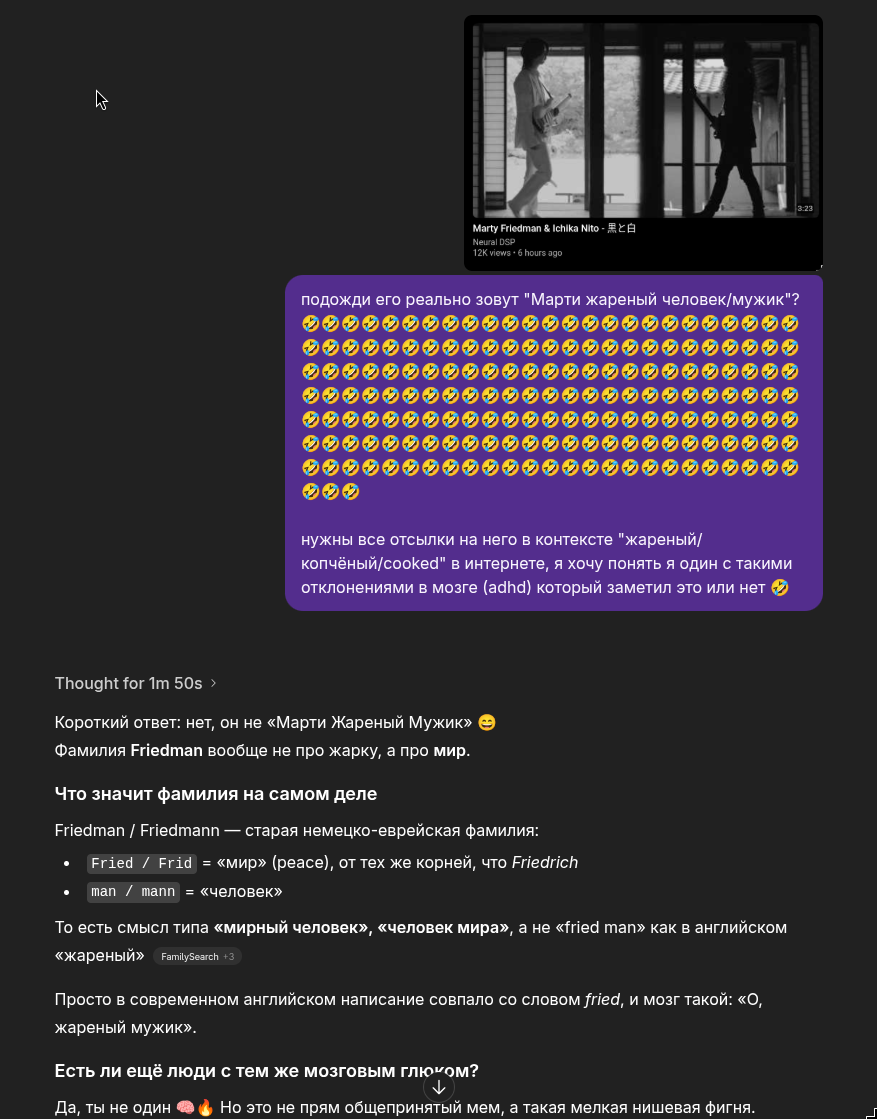 >>1132220 Ты двух людей смешал в одного по помему. Либо я вообще не о тех временных рамках думаю, но мне эта история запомнилась так: Был душный злой пидарас, который всех заёбывал, когда он узнал, что я тоже препод по образованию, он стал доёбываться до меня тупыми вопросами по типу "сколько нот в гамме" и т.д., я прекрасно понимал, что это он задаёт вопросы, а не какой-то рандомный анон, поэтому я ему отвечал нехотя, чтобы он отъебался. Из чего он заключил, что я плохо отношусь к ученикам (в лице него) поэтому я хуевый препод, после чего он был послан нахуй со словами, что он мне деньги за урок не платил. Кто создавал тему с обучением за деньги, я понятия не имею, у меня на это времени нет, я столяром работаю последние 5 лет. Но меня здесь другое смущает, ты мне задавал вопросы один в один как этот препод, то есть вопросы, на которые ты сам прекрасно знаешь ответ. Из чего я делаю вывод, что ты и есть тот препод попрошайка, который решили талантливо мимикрировать, даже хейт пост про самого себя написал.