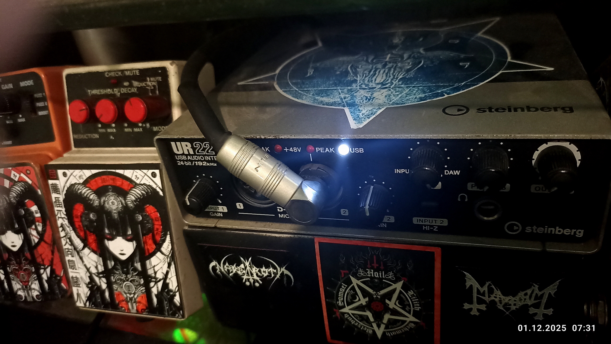 а именно провод заебал, потому что он тяжёлый и постоянно тянет голову вниз или на струны падает, поэтому я его к столу прямо перед собой прикрепляю липучкой
