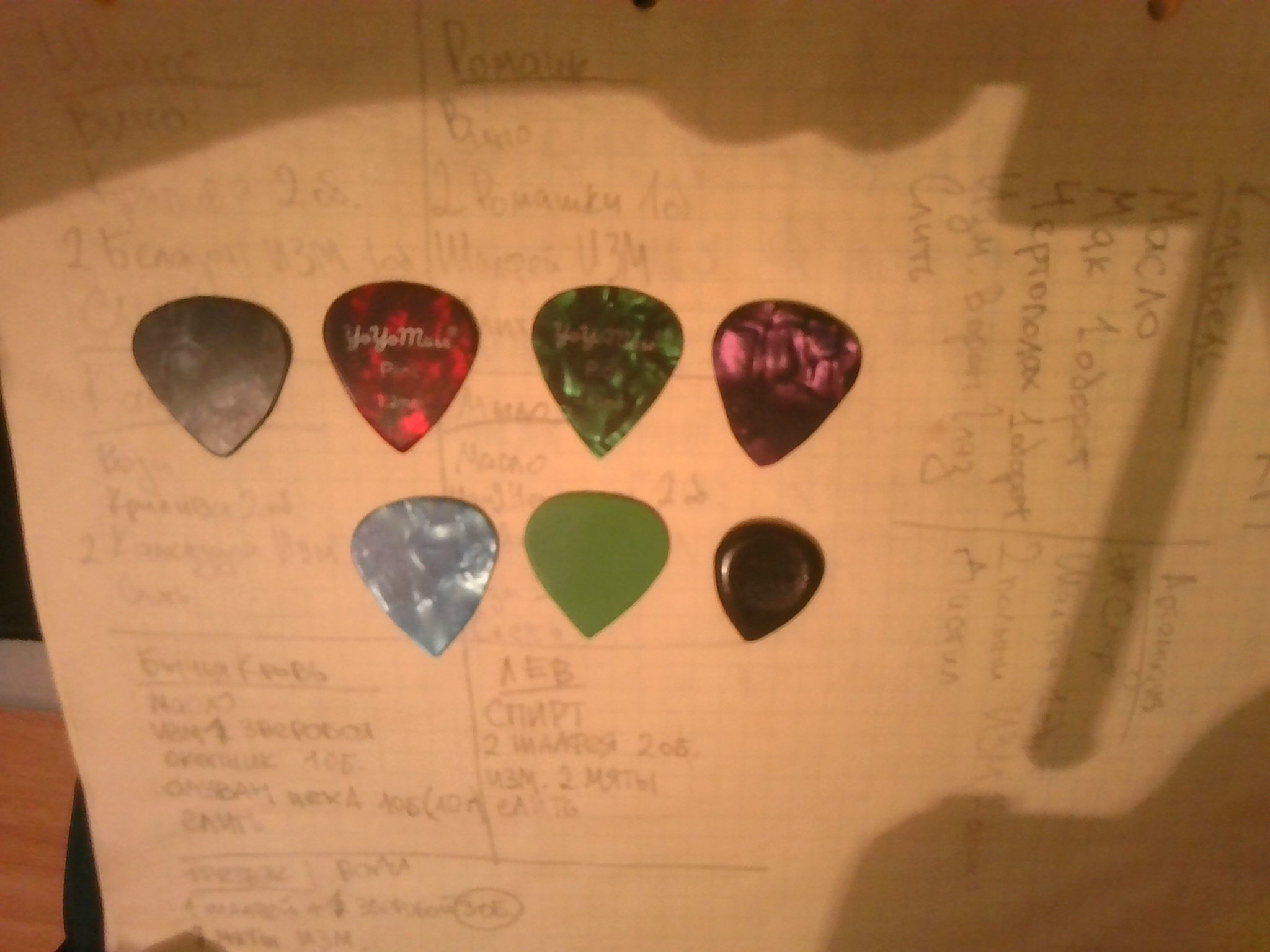 все медиаторы затачиваю напильником, а потом на точильном камне 1000 какой медиатор взять по толщине? играю на 9-46, иногда опускаюсь в До, чтобы подрочить нуметалл, но сейчас подостыл и вернулся в классический Ми.