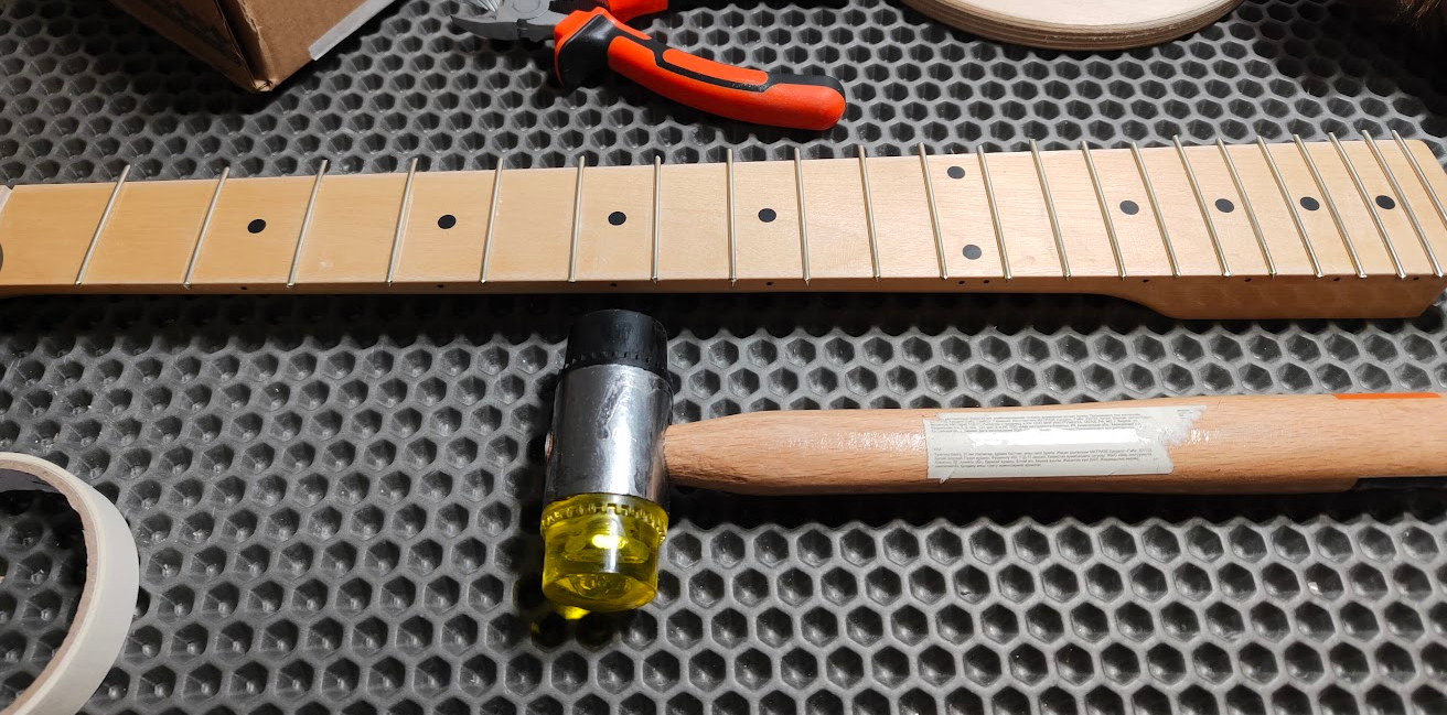 А я сегодня лады впервые в жизни установил. 10 лет назад пробовал - не получилось. Расщепил тогда к хуям весь палисандр варварским методом и побежал плакаться к мастеру, тот мне за 8000 рублей поменял. Пальчиком погрозил мне, чтоб я больше не смел лады сам менять - только за деньги, нехуй учиться.