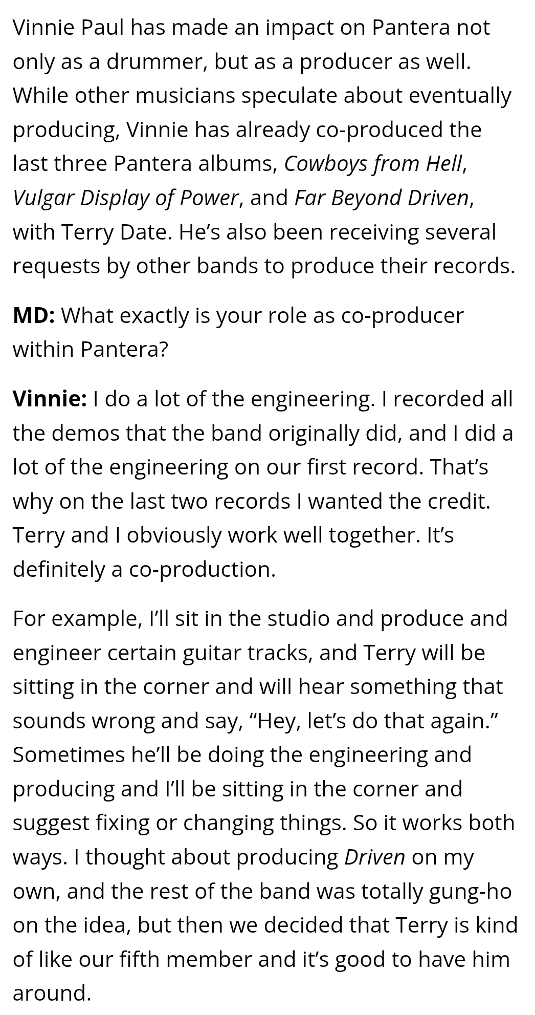 >>1136224 Ну он пишет что и демки записывал и в первом альбоме тоже. Просто на последних он именно указан как продюсер, а так он с самого начала звукорежит