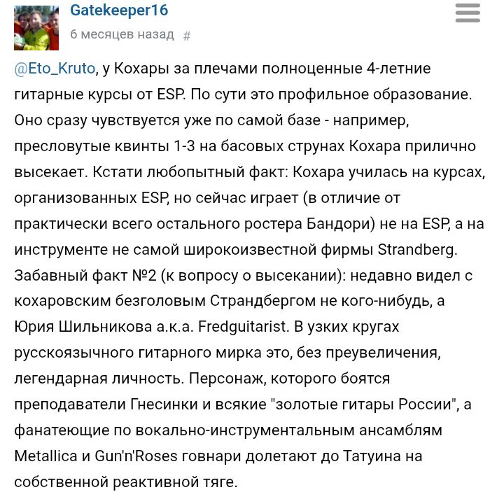 Я уже перестал говорить какая у меня гитара. Все начинают ржать и насмехаться. При этом этот "китаекал" невероятно удобен, стабильно и по ладам всё отлично. Практически, палка мечты, ну кроме бренда на нём. Причём я бы и не совсем нищеброд, просто не вижу смысла покупать какой-нибудь Фендыр, просто не понимаю и не вижу чем он бы мне помог в игре. Сейчас бы трястись и аккуратно обращаться с инструментом, не дай бог, ещё и украдут