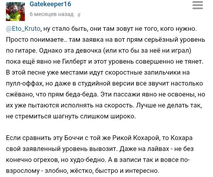 >>1137062 Ну и ты не самое лучшее время выбрал. Раньше хоть на ютюбе можно было поучиться, если английский хорошо понимаешь. А на русском языке и на отечетсвенных площадках по гитаре нет информации вообще.