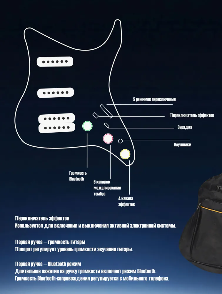 Из базиса, на что опираться при выборе - корпус суперстрат/стратокастер (с ним удобнее сидеть, более эргономичный и держит баланс), два хамбакера (это такие звукосниматели с двумя рядами кружочков/магнитов), и лучше без рычага whammy bar.