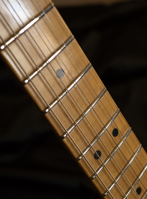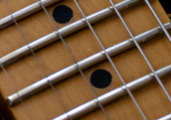 >>1136231 На накладке дотов может вообще не быть. Они расположены на ребре грифа. Или сбоку на накладке, как угодно. Никаких неудобств не возникает, ты же сверху вниз на гитару смотришь, а не не накладку напрямую.