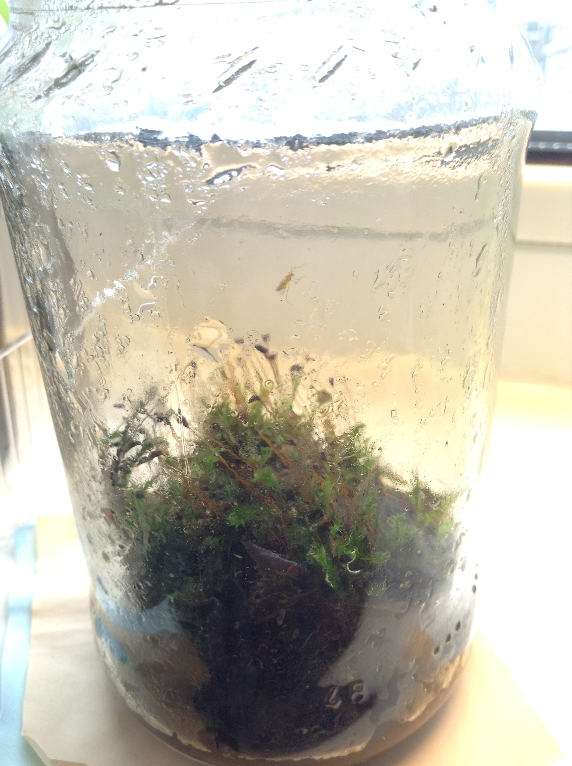 Закинула в банки рандомные куски леса 9 месяцев назад. В маленькой баночке даже комар вывелся на третий месяц, 3й пик очевидно не комар, а что-то типа мотылька В большой баночке с весной и как солнце начало светить в окно заколосились травки, которых раньше не было. Занятная штуковина, в следующий раз заведу красивые банки и уложу там всё уютно.