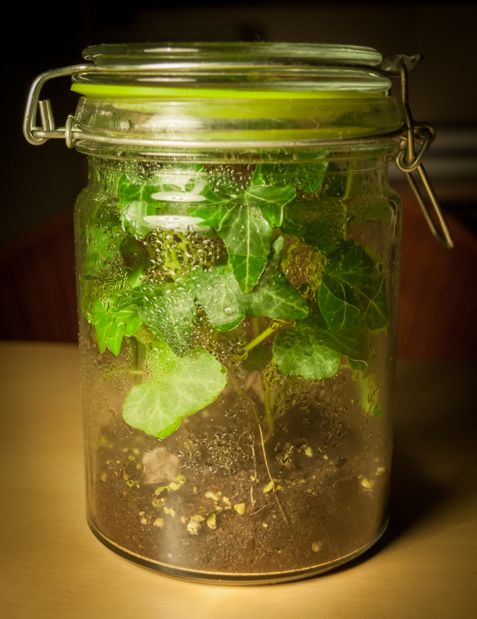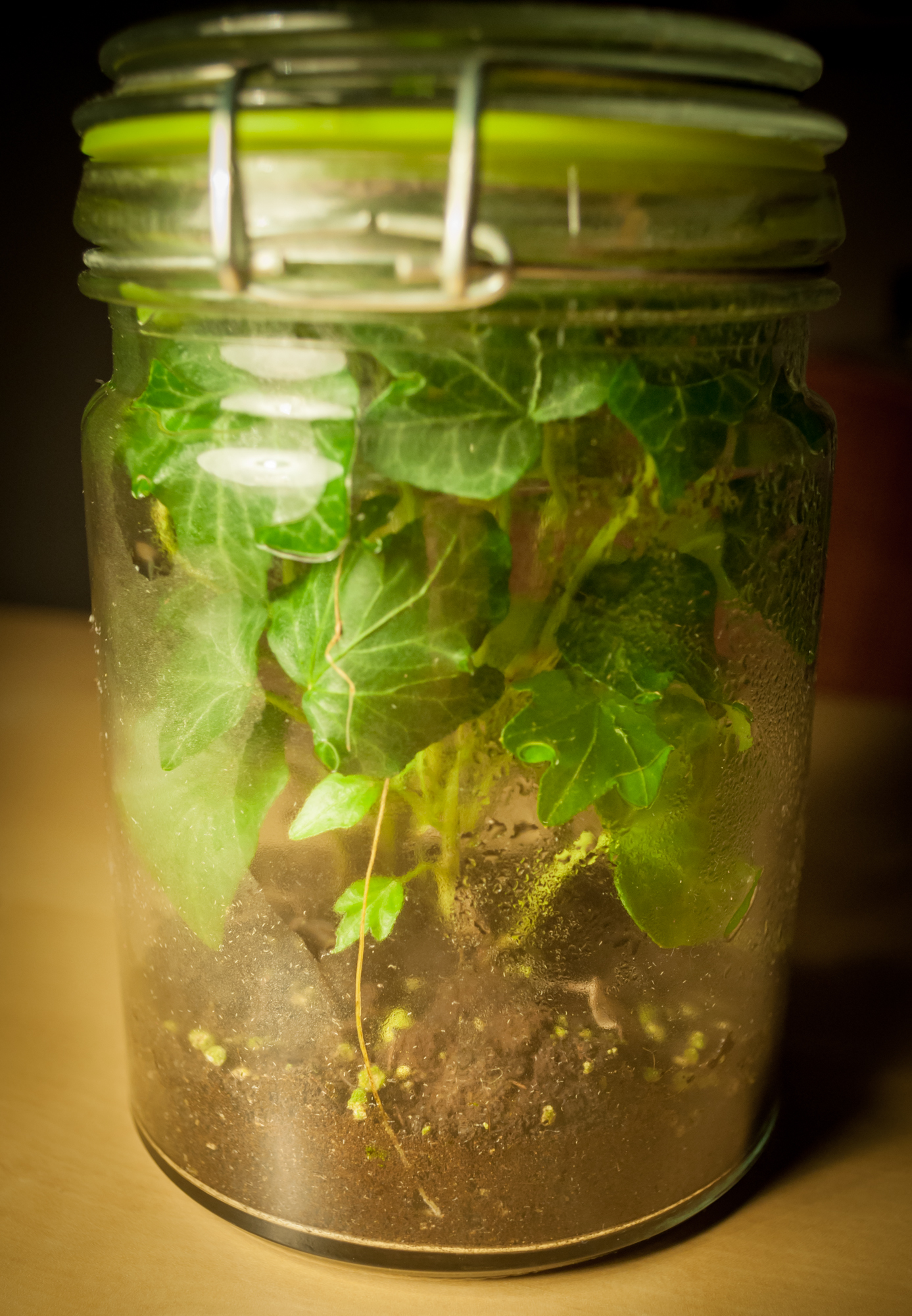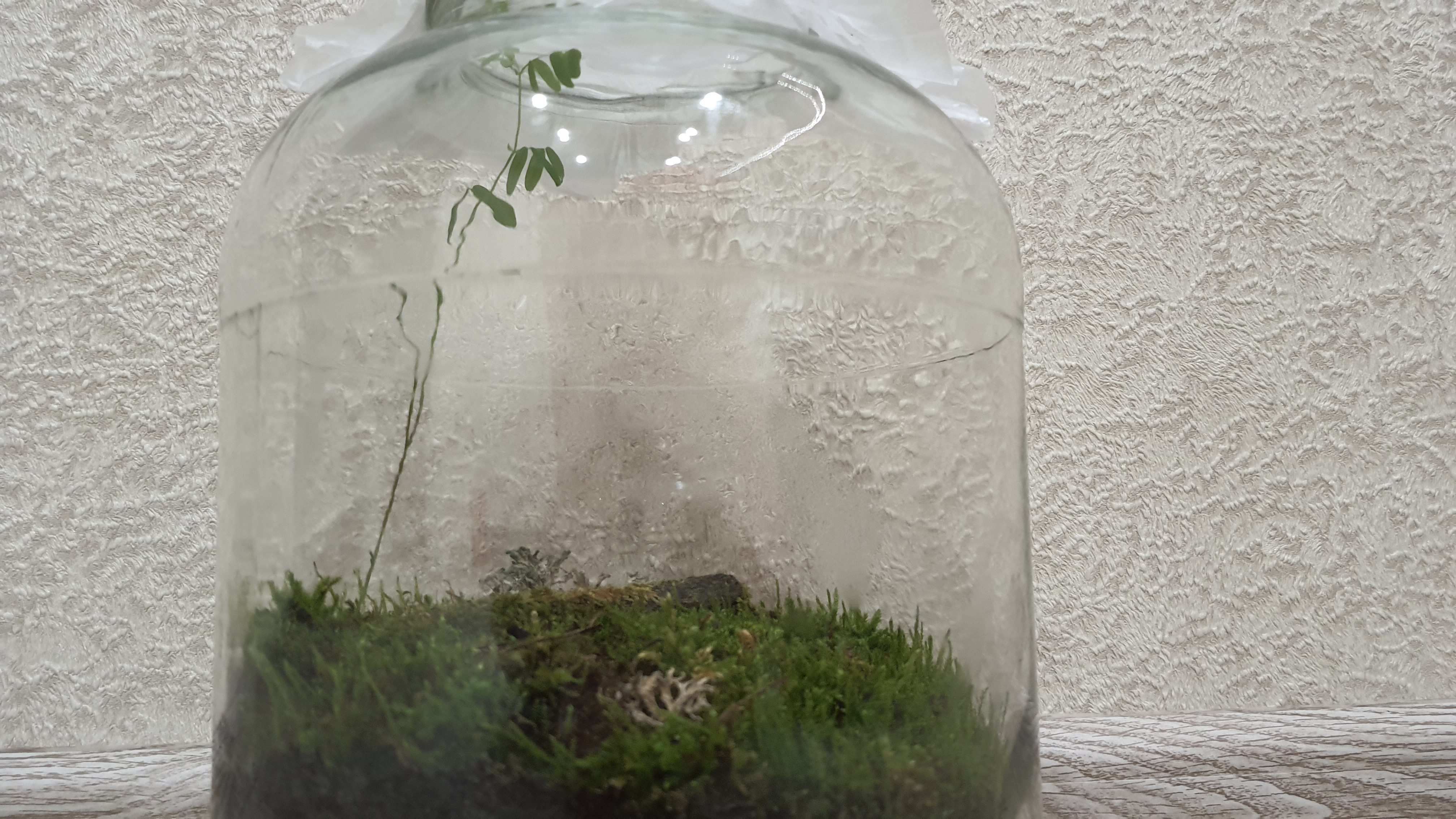 Пожалуй, стоит добавить, что лучше всего для закрытых систем подходят растения с множеством мелких листьев. И причина вот в чем: растение развивается, потребляет всё больше воды и питательных веществ из ограниченной почвы, наступает момент когда в почве остаётся недостаточно воды и веществ, листья начинают отмирать и опадать, тем самым подпитывая почву и возвращая влагу. Но если листьев мало и они крупные, то они падать и разлагаться будут слишком медленно и сам стебель растения может успеть испортиться до того, как эти крупные листья отдадут свои вещества земле.