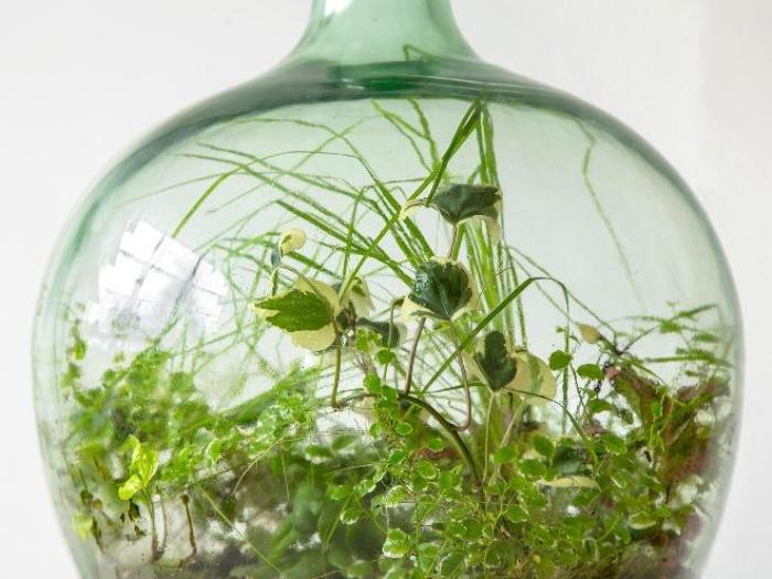Кто-нибудь ИТТ занимался подобным в больших объемах? Хочу взять 20л тару, спилить горлышко, напихать туда всякого разного, потом заклеить. Размещать планирую на бок и на полку, заднюю стенку покрасить, сверху повесить диоды полного спектра, как в гроубоксе, и использовать это в качестве декора.