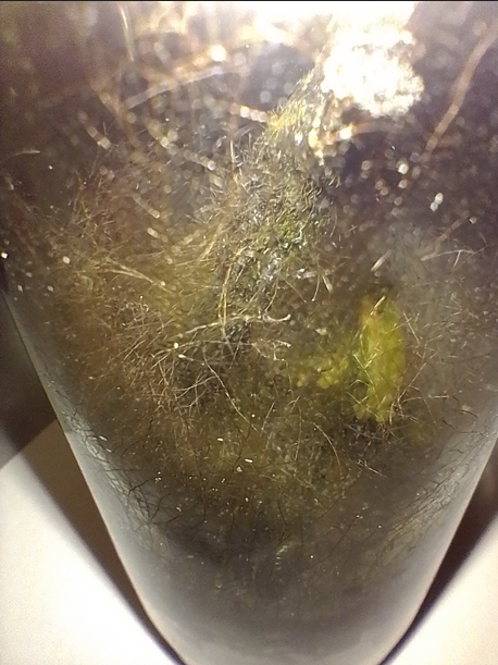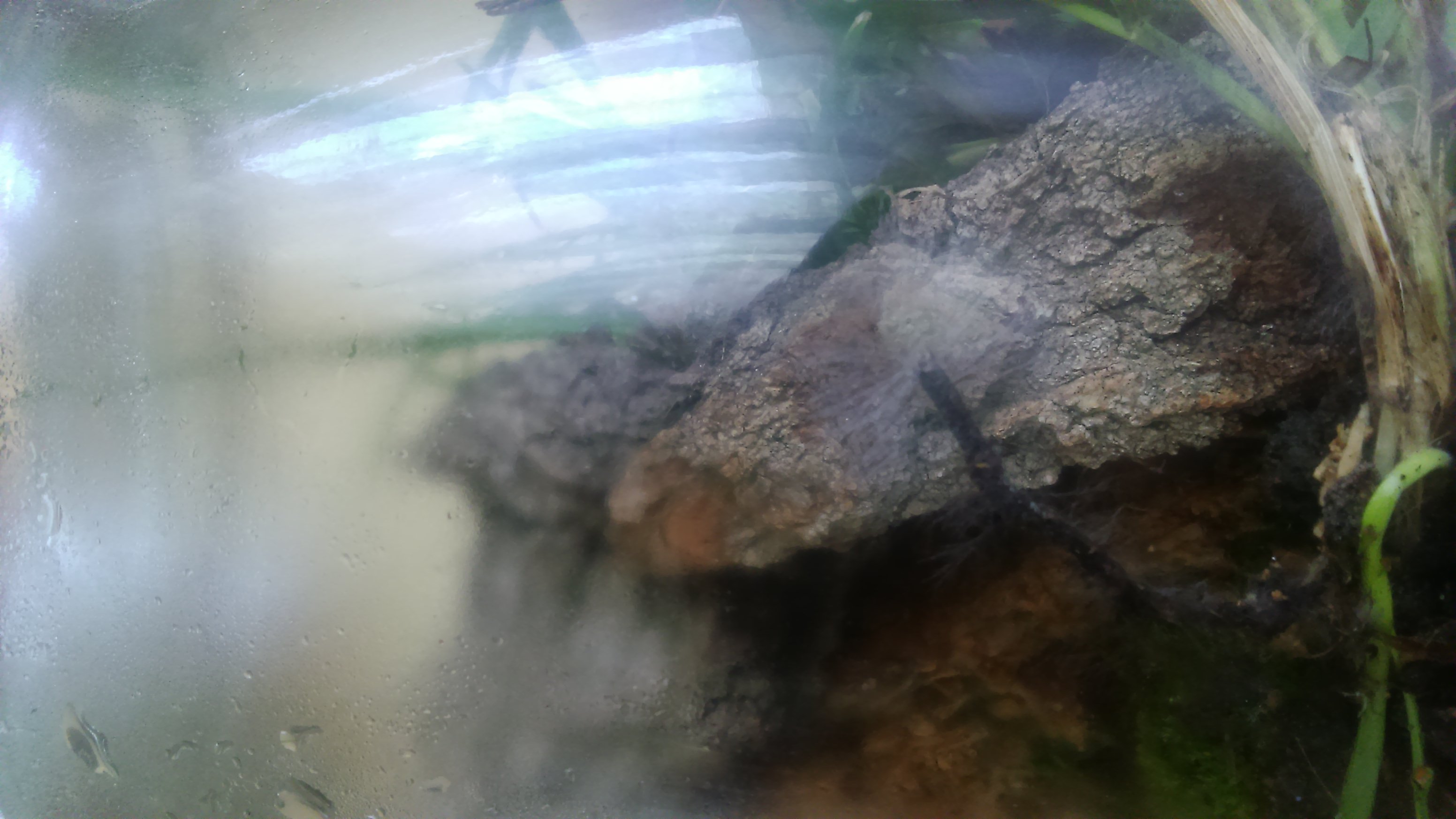 Банку вскрыл заради более чёткого снимка. Через стенки всё это плохо видно. Мешают конденсат, грязь, налёт водоросли, да и пятна, оставленные суперклеем.