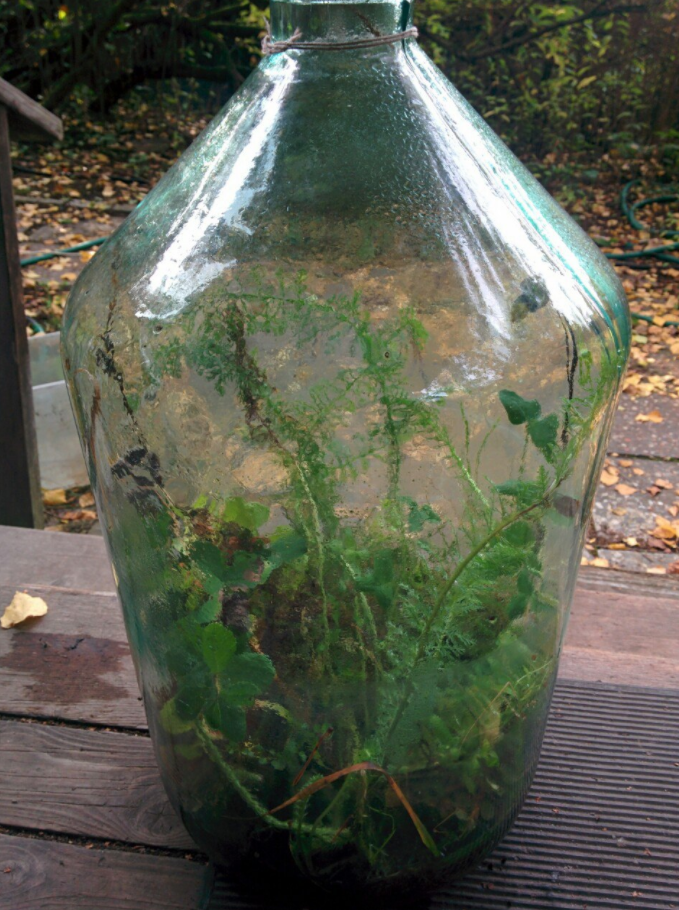 Закрывал месяца на 4, у мха зеленые ножки превратились в желтоватые, но все же торчали, не сгнили, больше ничего интересного. Никакой живности или иных неожиданных растений. Доливал немного воды/открывал проветрить, только потом закупоривал. В итоге отнес в лесок, где набирал, открыл крышку, буду репортить по возможности если не разобьется от погоды/говнарей/псов.