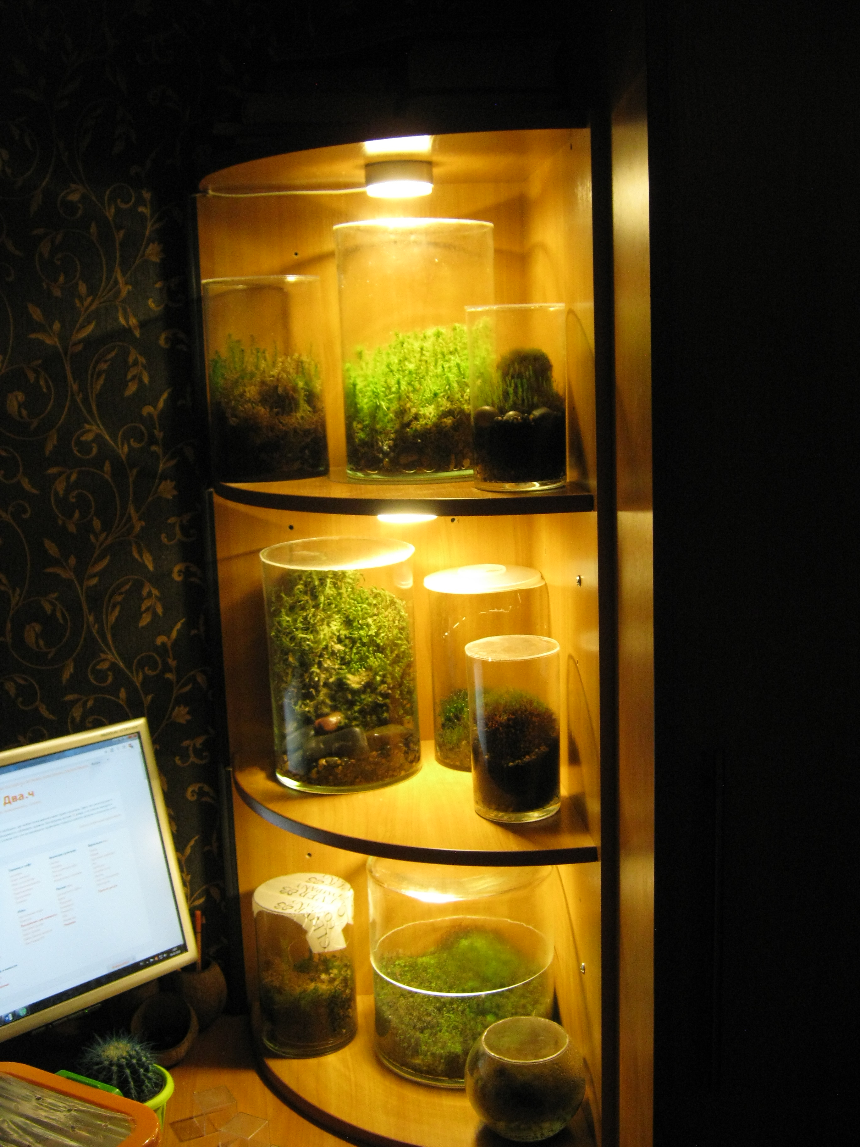 Хочу в вам вкатиться, есть несколько вопросв: 1. Что с освещением? Я так понял, надо либо держать банку у окна, либо освещать искусственно. Если второе, то какой должен быть свет и сколько его надо для мха, например? 2. Есть ли разница в выживаемости экосистемы в малом объеме (лампа, например) и в большом (20 л. бутыль)? 3. Какие растения в таких условиях растут хорошо, а какие не очень?