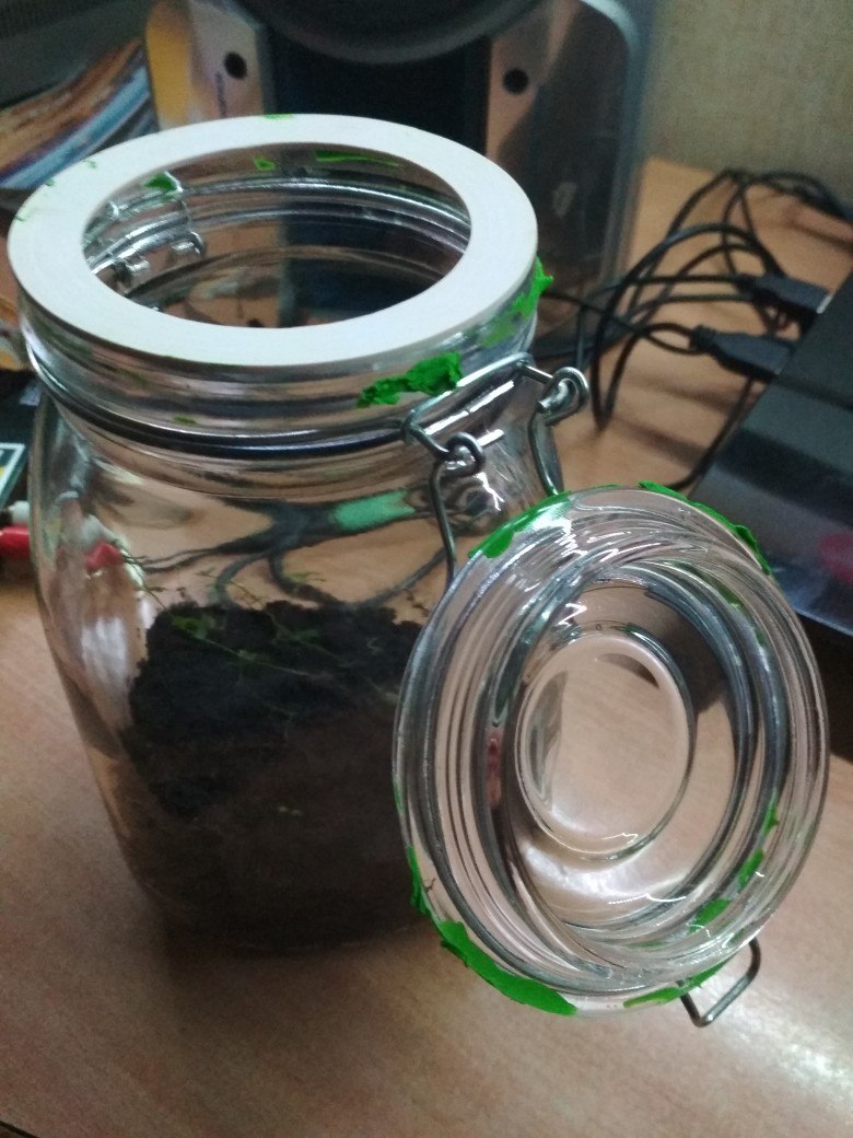 >>135195 Есть такое. >>135402 >Полиеэтиленовой крышкой? Не, это двухлитровая банка за 150 рублей со стеклянной крышкой и прокладкой. Думал сначала закрыть просто так, не добрался больше ничего, но после проверки банки водой прокладка не выдержала и стала пропускать. Думаю воздух там выходил бы ещё активней, поэтому залепил по кругу пластилином другого ничего не было под рукой. Механизм открывания привязал веревкой к самой банке. Но короче банку я все же вскрыл, потому что из за просто поехавшей влаги внутри одно из растений начало потихоньку чахнуть, а на листочке вроде как стала появляться плесень. Короче вскрыл и вытащил этот росток, откачал воду клизмой сколько смог, теперь вот сижу жду пока влажность почвы ещё ниже станет, а сохнет она в банке очень медленно. Думаю на днях снова закатаю ее и буду дальше смотреть.