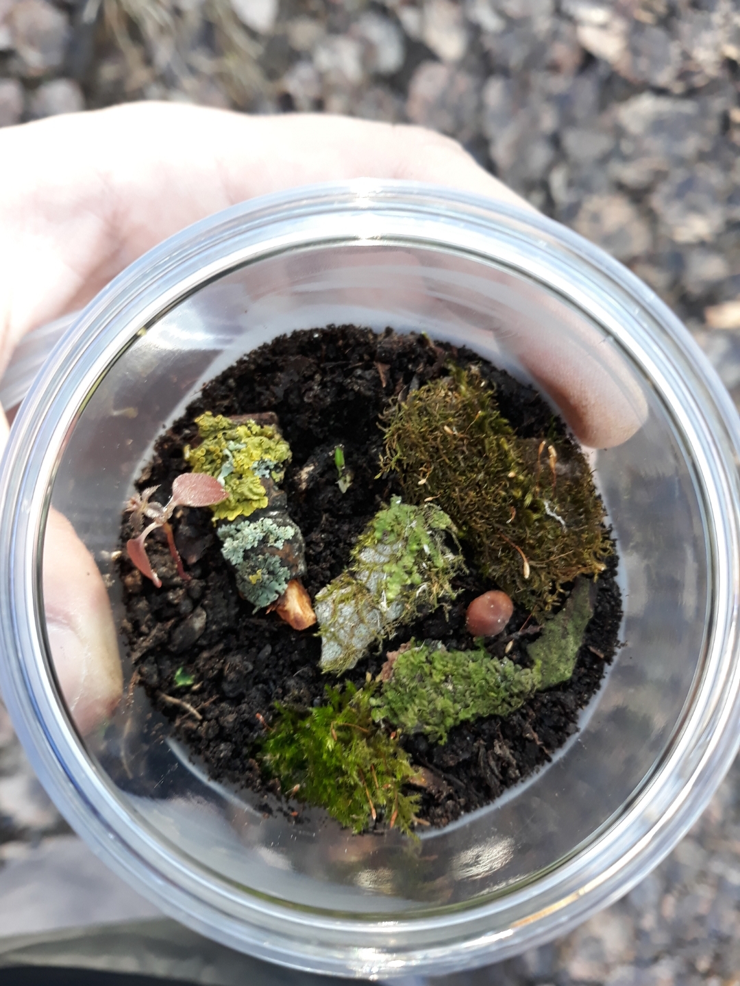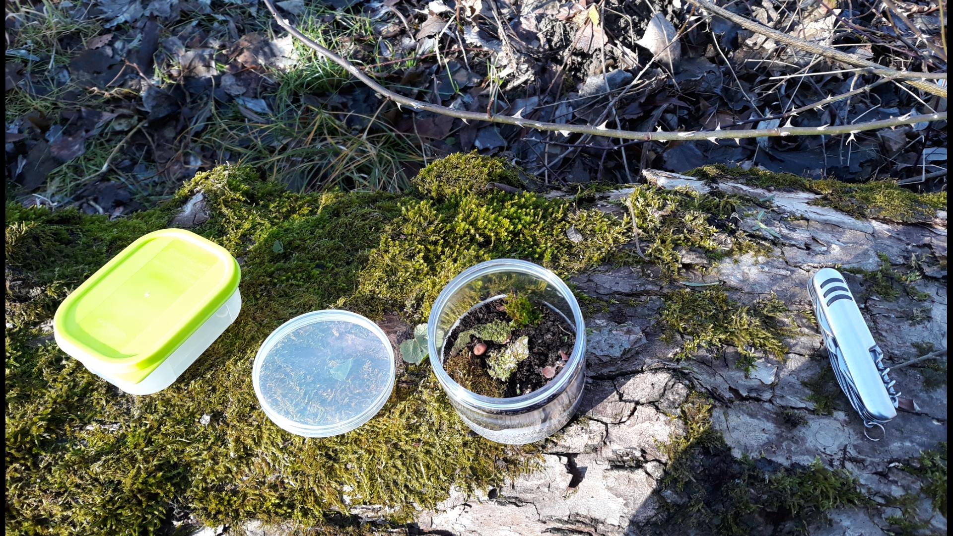 пора вкатиться и мне. вчера надыбал этот тред, сегодня поехал в магазин, купил баночку, фонарик, батарейки и поехал в лес. набрёл на свою любимую полянку. убрал листву, собрал землю с какими-то мелкими гнилыми палочками, пруф пик 1 прилагаю. несмотря на морозец живности было много, особо крупную пришлось отбрасывать. поковырял деревца, пни и в итоге у меня несколько видов мха (надеюсь это не один и тот же мох на разных стадиях развития), какой-то коричневого цвета цветочек (таких больше нигде не видел), маленький гриб того же цвета и росток какой-то травы, вроде бы клевер. мох срезал с дерева вместе с корой, естественно слой небольшой толщины, ибо баночка маленькая. гриб рос в пне, его тоже срезал с кусочком пня, его протолкнул в землю, только слишком сильно, ибо кроме его шляпки на поверхности земли ничего нет. дома слегка полил водой, присобачил диодный фонарик и радуюсь жизни.