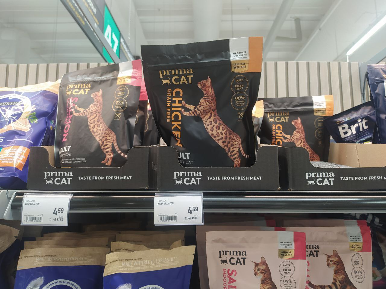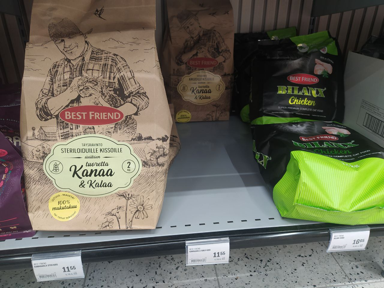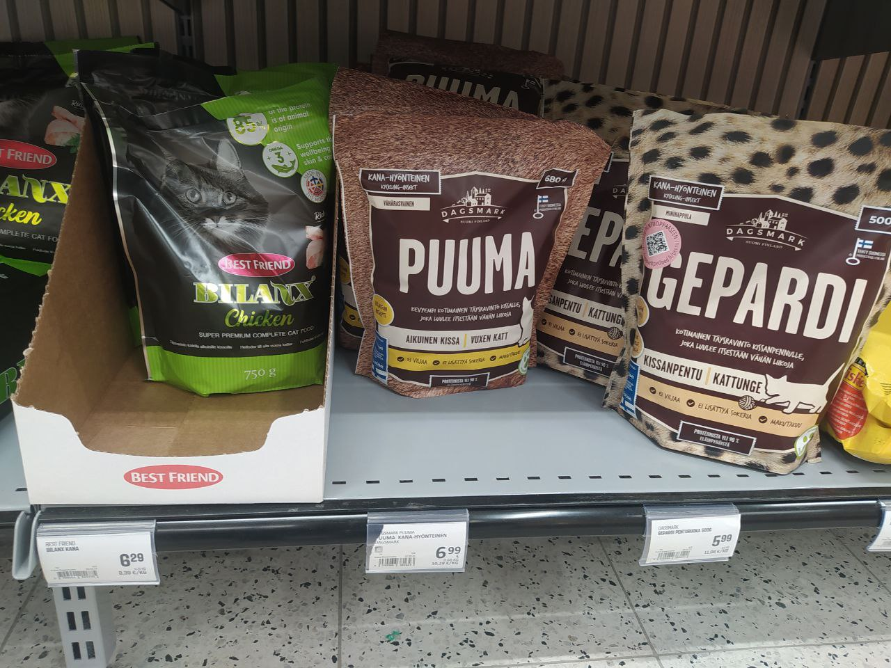 Какой ест сухой, не запомнил (мама его затаривает в центре города), раньше был Брит, но он пропал. Сейчас какой-то новый бренд (в плане недавно на рынке), что-то в два раза дороже что ли, на вид маслянистый