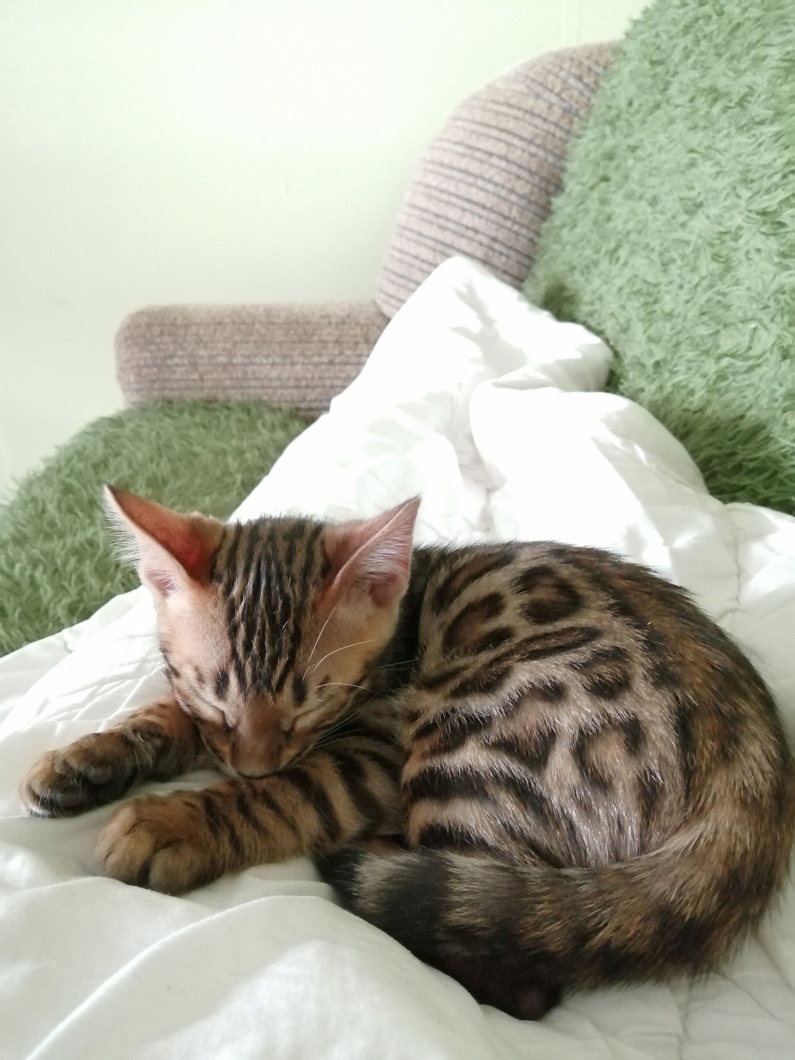 В общем, всё. Бенгала продал почти за половину цены. Уж слишком сильно он трепал нервы, я уже в голос начинал орать с его выходок. Взял мамку моей кошки. Сидит в открытой переноске, мой напротив неё и смотрят друг на друга.