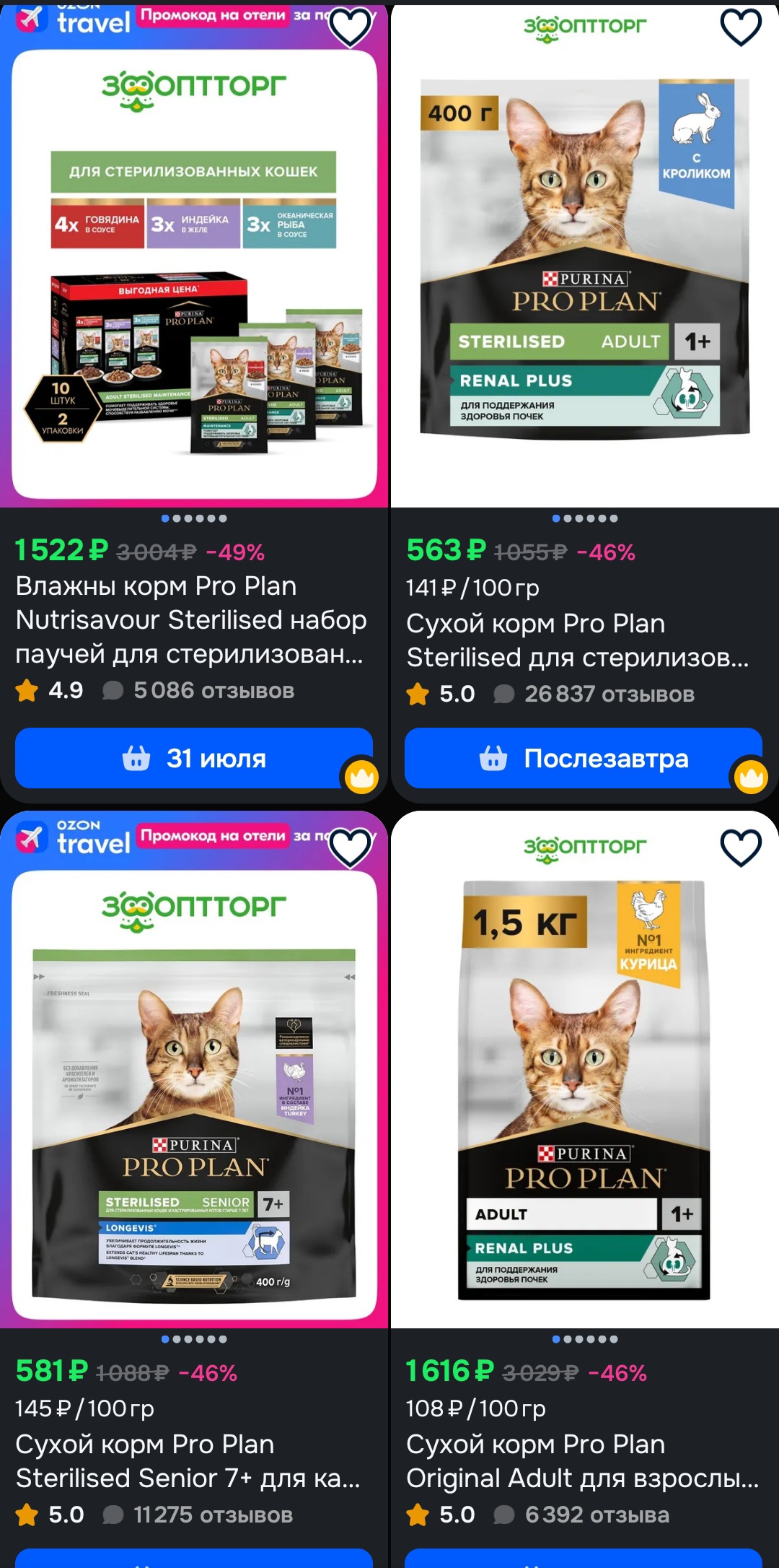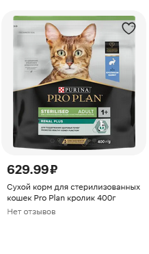 5. **Отсутствие специализации:** * Нет линейки для стерилизованных кошек (где снижены фосфор/магний для профилактики МКБ).