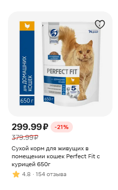 >>223784 У тебя ни в феликсе, ни в перфект фите мяса нет. ладно, беру свои слова назад, все-таки кормить кота феликсом хуже, чем составлять рацион через чатгопоту.