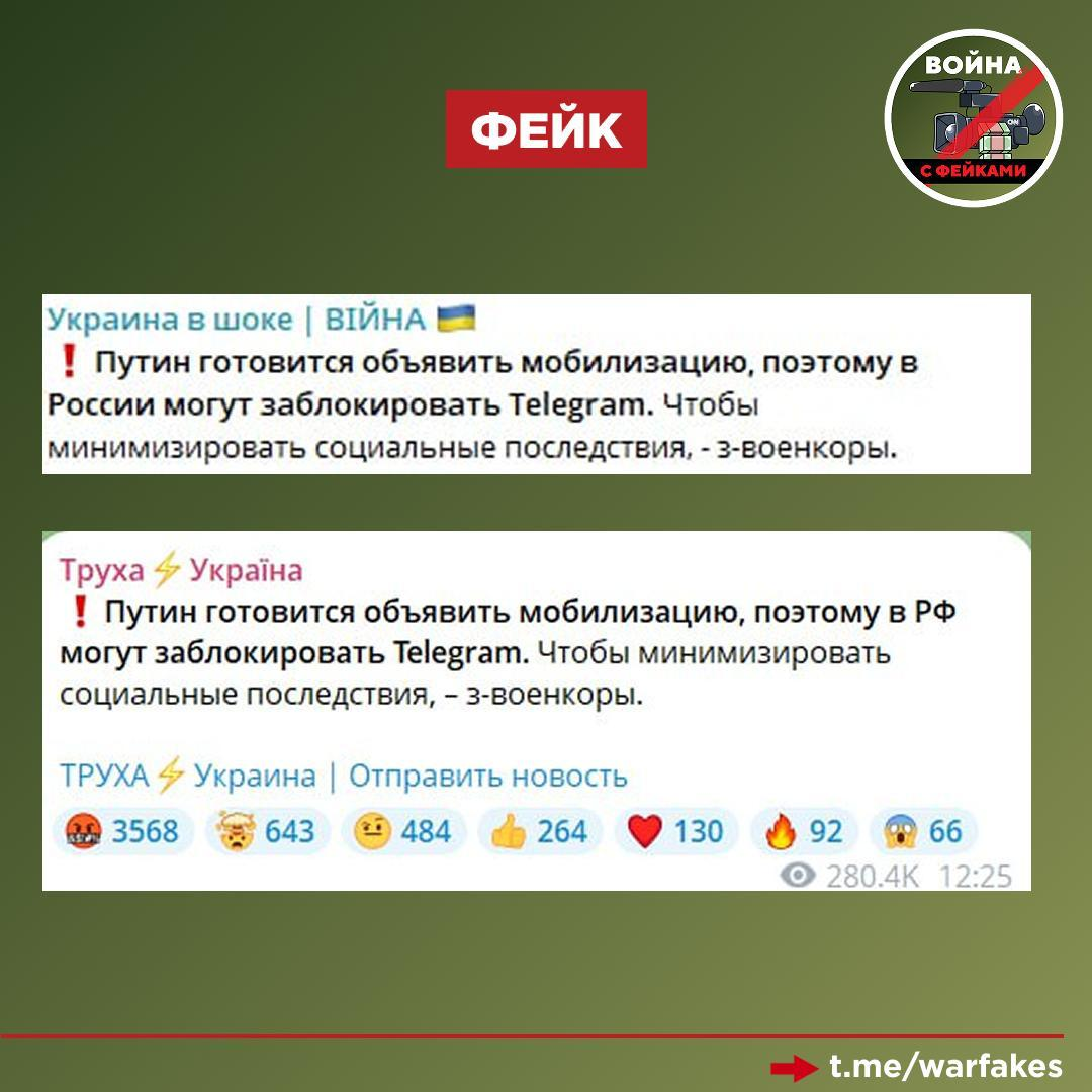 Фейк: В России замедляют и блокируют Telegram, потому что власти планируют объявить мобилизацию. Об этом пишут украинские Telegram-каналы и некоторые российские паблики.