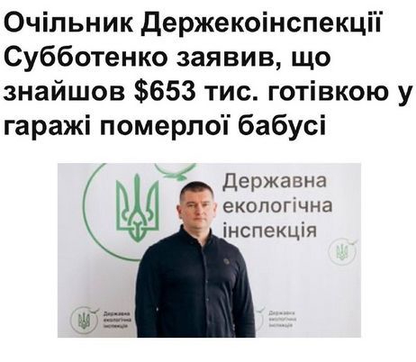 Исполняющий обязанности главы Государственной экологической инспекции Украины Александр Субботенко указал в декларации, что нашел более 653 000 долларов наличными в гараже своей умершей бабушки. Об этом сообщило украинское издание "Главком".