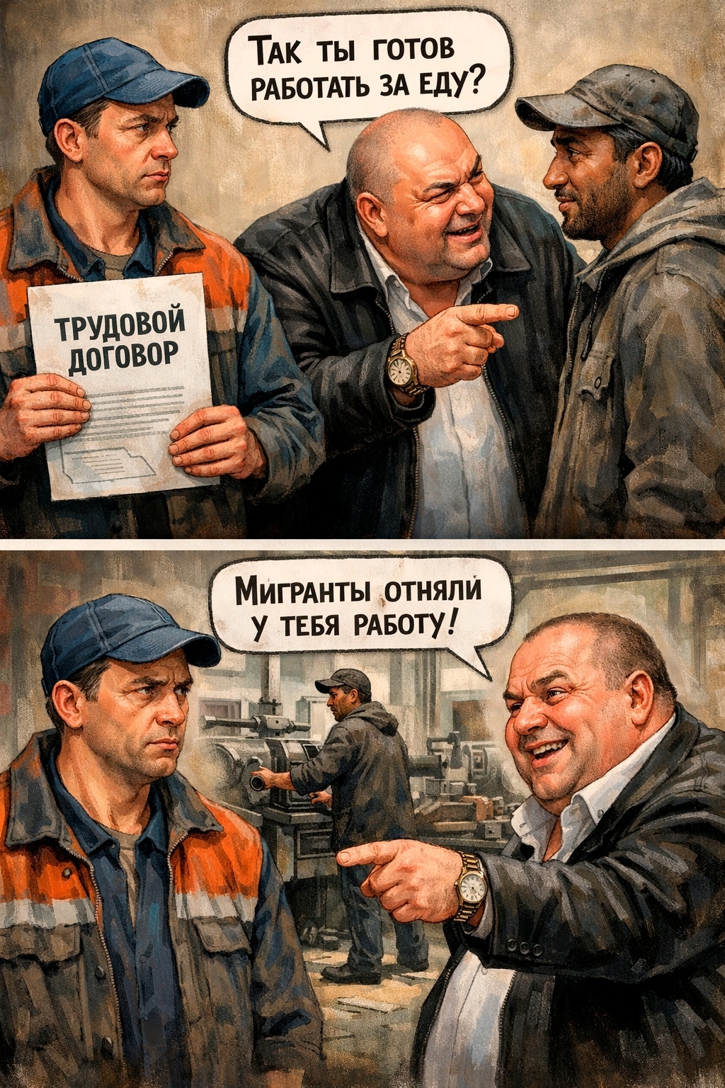 ну так найдите для начала кадров, которые смогут так же работать на нищенских работках как и мигранты. че в воду пердеть, для начала найдите решение проблемы, а не обсасывайте ее по многу раз. Русские или Россияне просто слишком я думаю образованные, чтобы потратить 13+ лет учебы на вкалывание разнорабочими