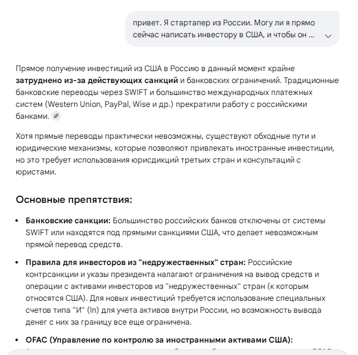 >>1700849 >Я могу туда пойти и с высокой вероятностью пробить бабки, ты нет ПОка не вижу, почему у тебя вероятность выше, чем у меня. Y combinator рассматривает участников из других стран. А, опыт работы, ну окей, пусть будет в 3 раза выше. Не 1%, а 3%. >У меня тут в городе сидят несколько контор, которые дают деньги, я сделаю прототип, назначу аппойнтмент, покажу им демку. У тебя такой возможности нет. Да, у меня трудности с привлечением денег из-за санкций, но меня это не пугает.