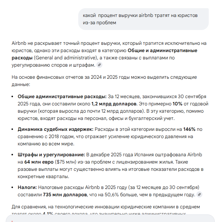 Иначе - какой процент... выручки airbnb тратят на юристов?