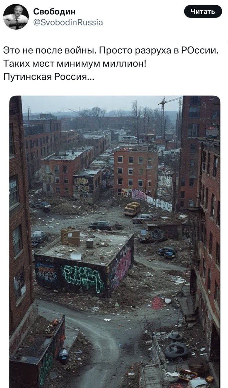 >>1701397 Неизвестно, не повторится ли 1917, 1941 или 1991, но уже при более активном участии откормившихся соседей. Происходит массовый завоз враждебных народов, которые уже вырезали русских у себя в нацреспубликах, и прямо говорят, что хотят повторить. Разрушена система подготовки кадров буквально везде. Над остатками промки висит кабаний нож, ведь распилить, продать и съебать - база кабанов. За эффективную защиту себя или своего окружения возможно отправиться в тюрьму на пытки. Периодически происходит отжим накоплений населения в разном формате. Жильё недоступно для приобретения населением. Но виноват высокий уровень жизни, не перепутайте.