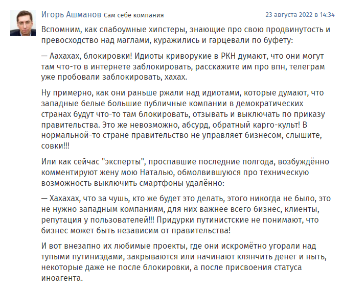 Но если быть более реалистом, ему понятно сказали, что ВКонтакте будет делать то, что хочет государство, поэтому у него выкупили его долю по рыночной цене. Его не обидели.