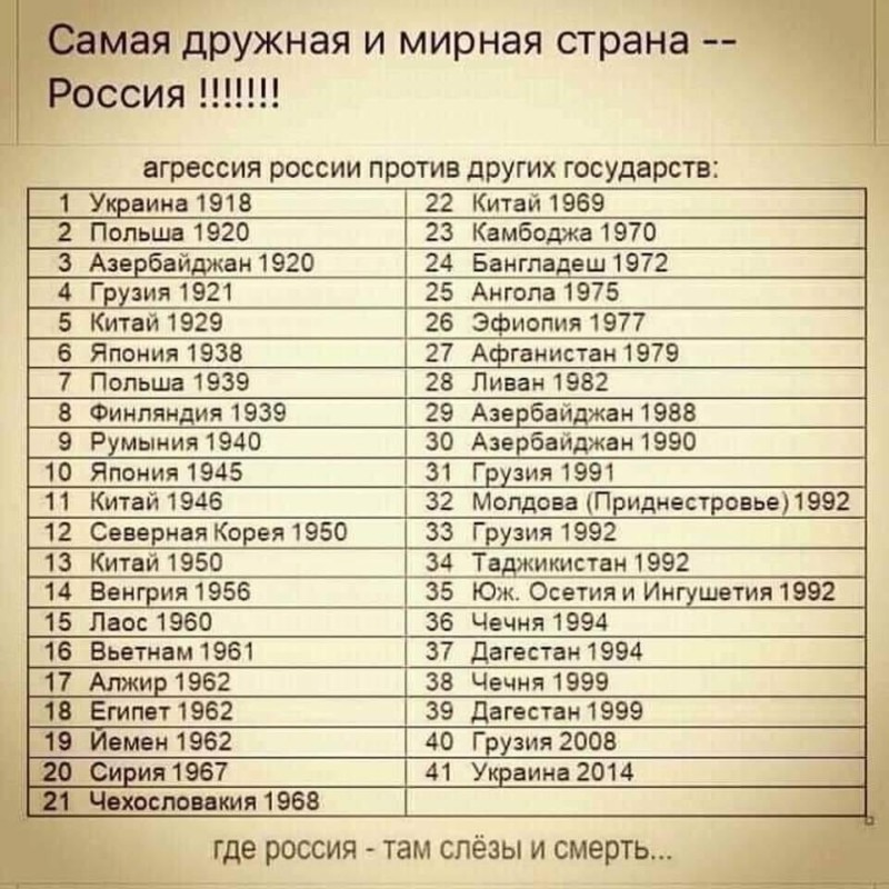 Если ты вспомнишь сколько проблем было в 90х и какая экономическая ситуция была хуёвая, то может быть поймёшь что было не похуй, а просто не было возможностей и устоявшийся системы власти чтобы такие вопросы решать. Когда возмоность чуть-чуть появилась чтобы хотя у себя дома разобраться (Чечня), то внезапно пришли помочь хохлы, только не братьям-славянам, а бородачам-исламистам, которые школы захватывали с больнциами и терракты устраивали. >>1692845 >Никому нельзя воевать, пидоран. Только НАТО можно, да? Буквально коалиция, созданная для самообороны, но ни разу не применявшая оружие для этого, всегда самооборона происходит где-то в Ираке, Ливии, Югославии, Вьетнаме, Украине итд. Попутно рассказываются конечно сказки что "если мы сейчас не разъебём Югославию, Ирак, Россию, нужное подчеркнуть, то завтра армия Милошевича, Хуссейна, Путина будет стоять в Лиссабоне. Самому не смешно?