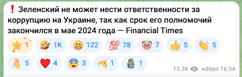 https://tass.ru/mezhdunarodnaya-panorama/22707837 по-моему он раньше завершения работы президента (просрочка, кек) начал к амплуа комика возвращаться. Зе завил в/на нет коррупции. Смешно очень, шутка это от Зе.